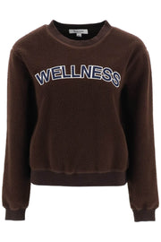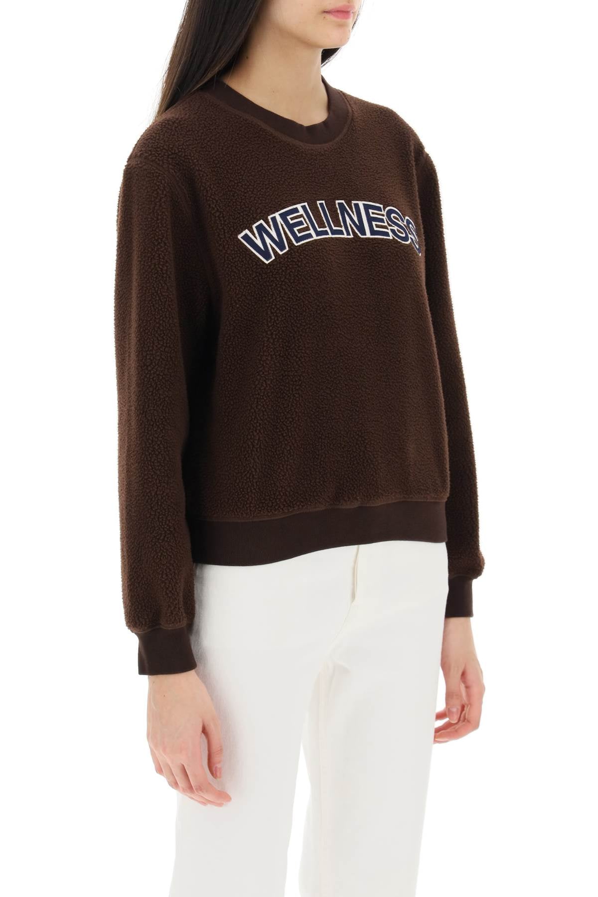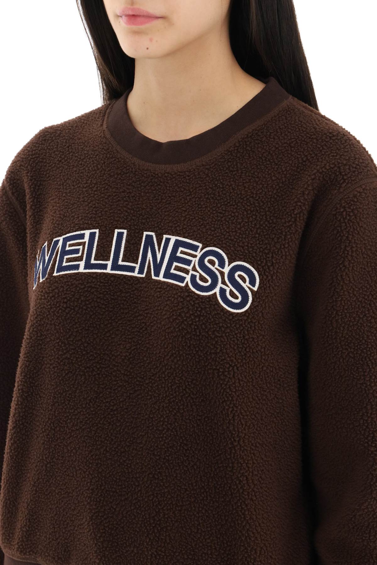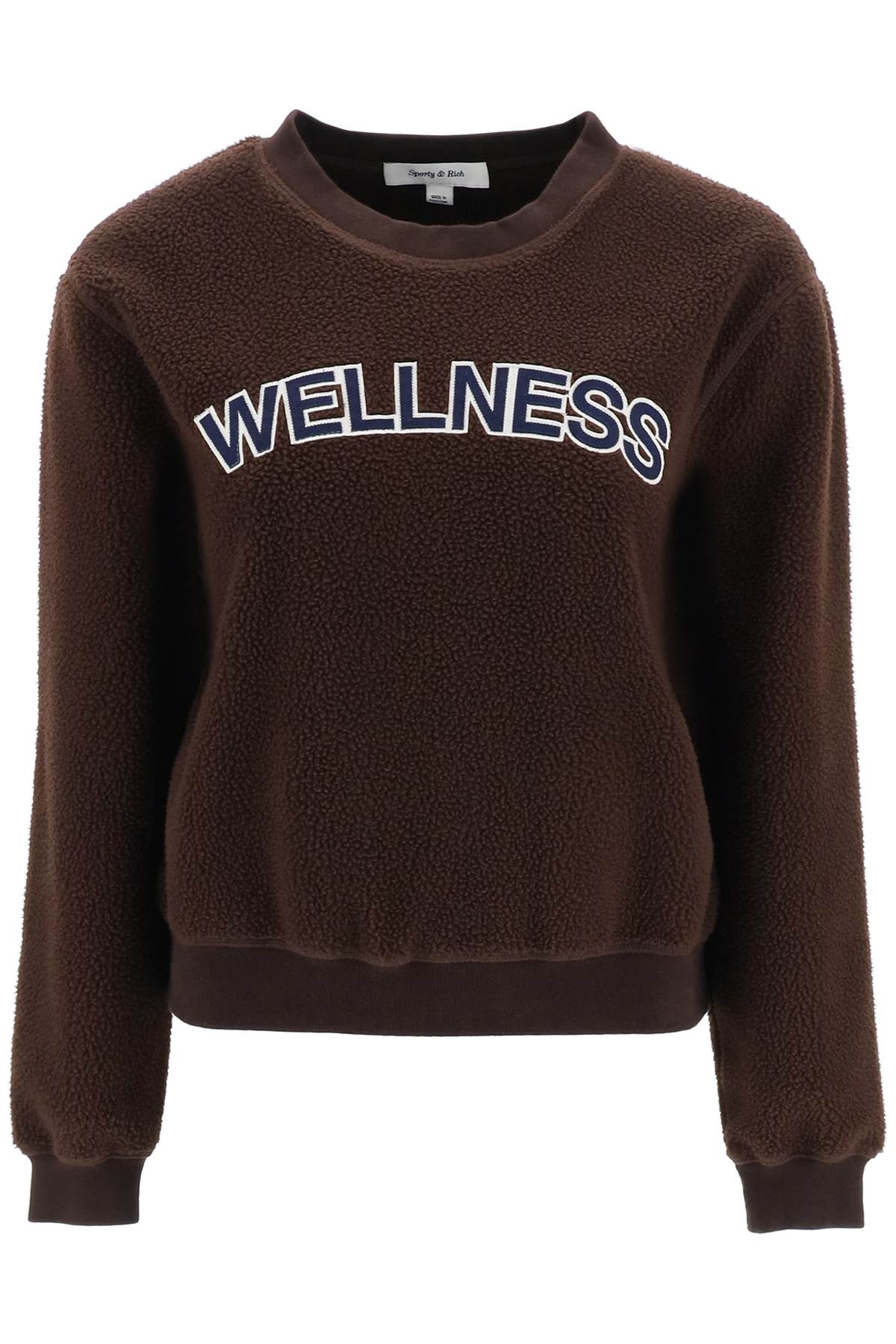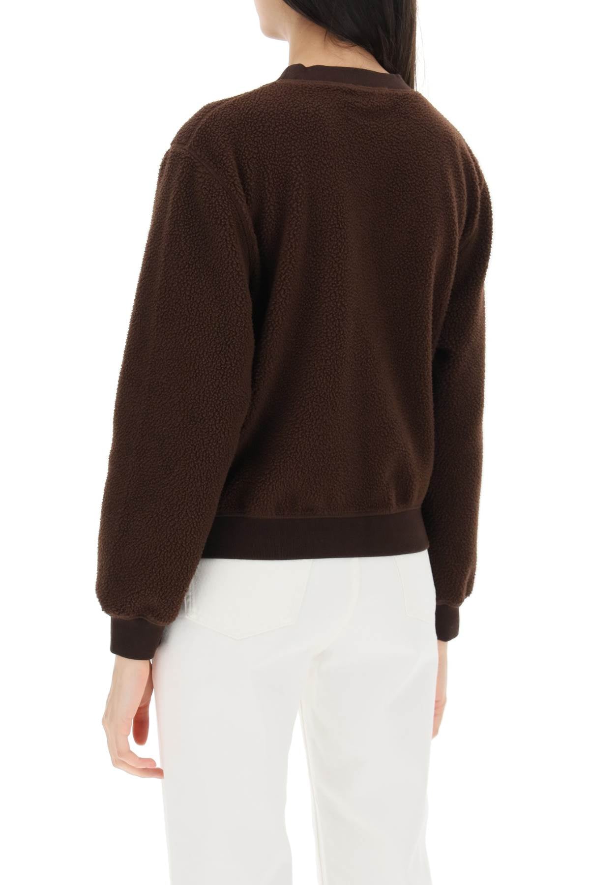 Sherpa fleece crew-neck sweatshirt by Sporty & Rich with a jersey lining and a light padding. It features ribbed hems and contrasting lettering patch at chest. Short and loose fit. The model is 177 cm tall and wears a size XS.