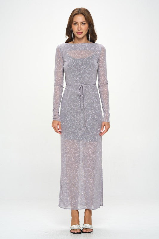 Made in USA Stretch Mesh Glitter Dress with Lining. Lining: 95% Rayon, 5% Spandex. Self: 98% Polyester, 2% Spandex. Available in other Colors.