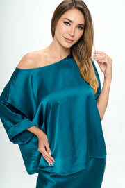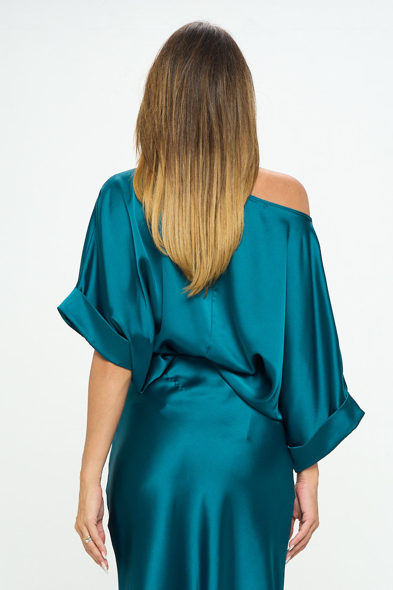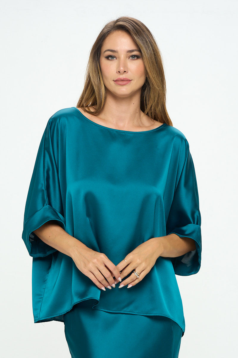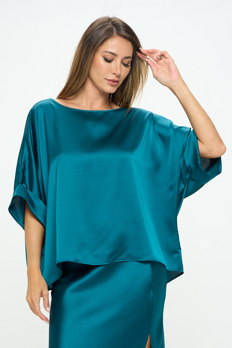 Stretch Satin Solid Round neck Oversize Top-Tops-Reneecollection-Urbanheer