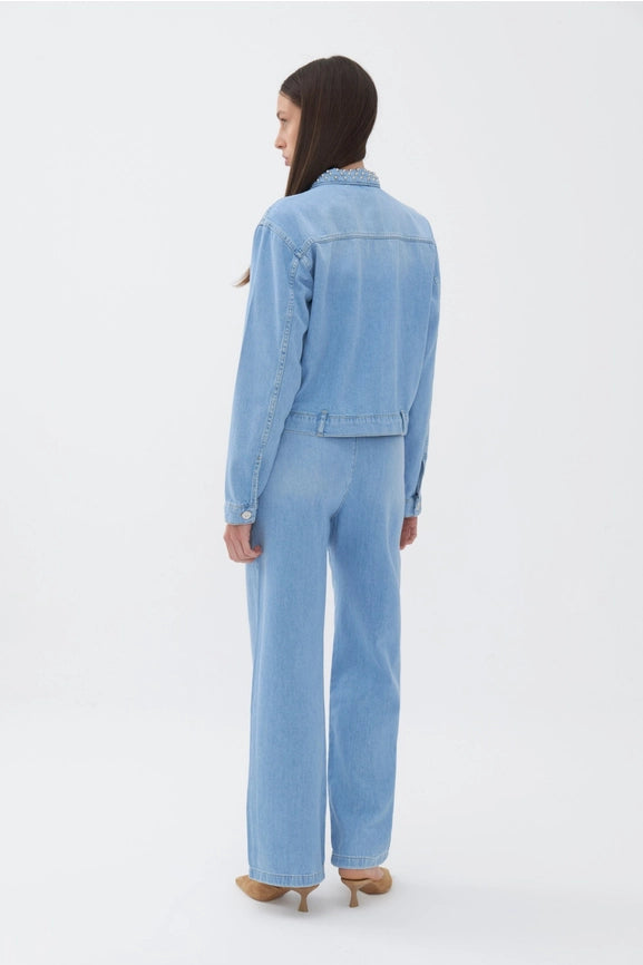Expertly crafted in Turkey, this studded jean jacket is made with a comfortable cotton-rich fabric, giving it the appearance of a washed pair of jeans. The studded detail adds a touch of style and the folded collar and front metal buttons add to the overall comfort and versatility. Easily maintain this jacket with machine washing, tumble drying, and low ironing options.
