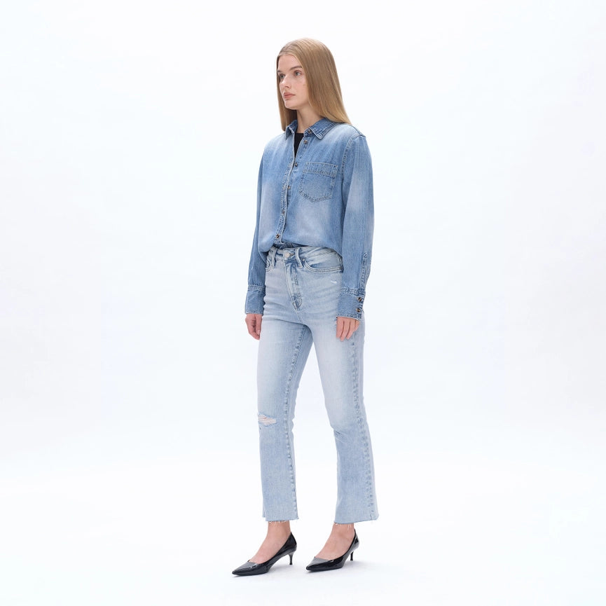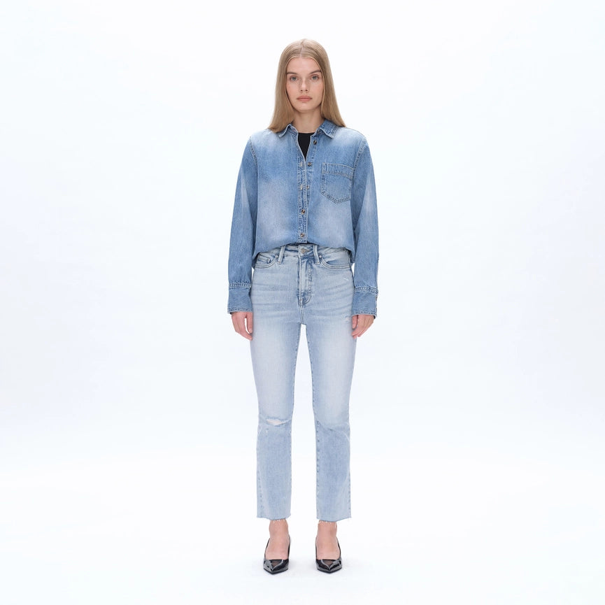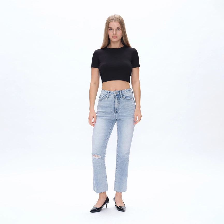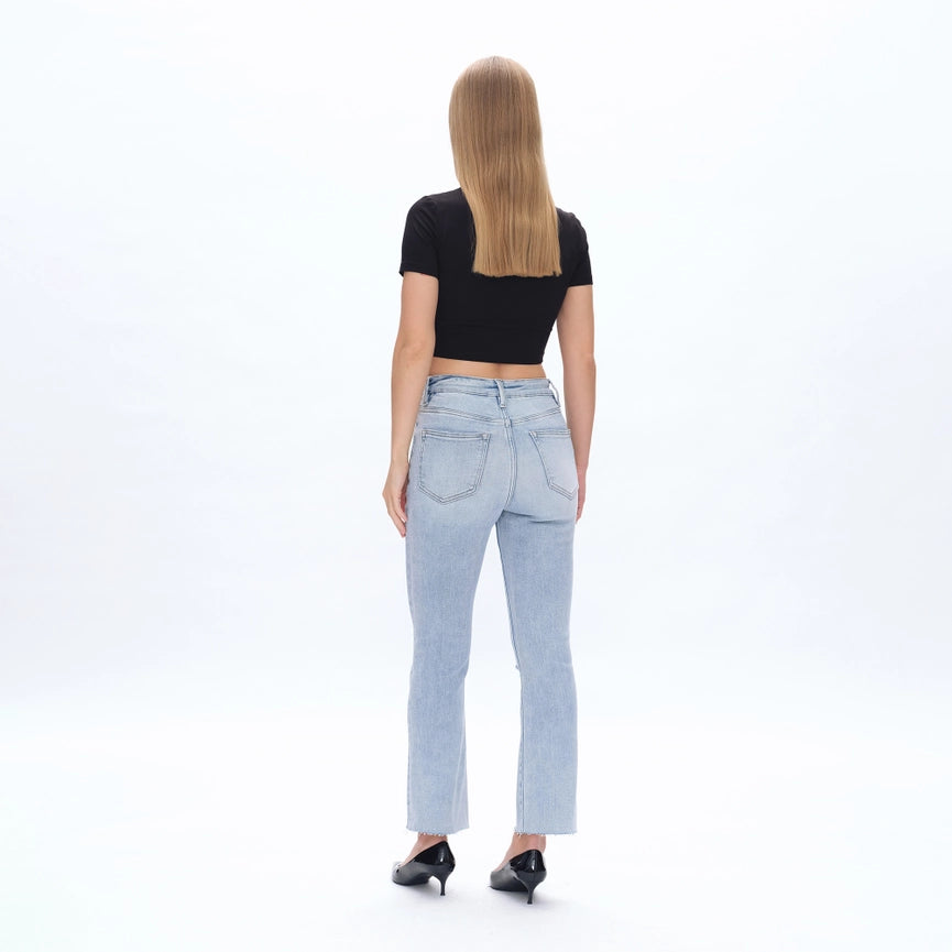 Super High Rise Straight Jeans with Raw Hem CAMBRIDGE