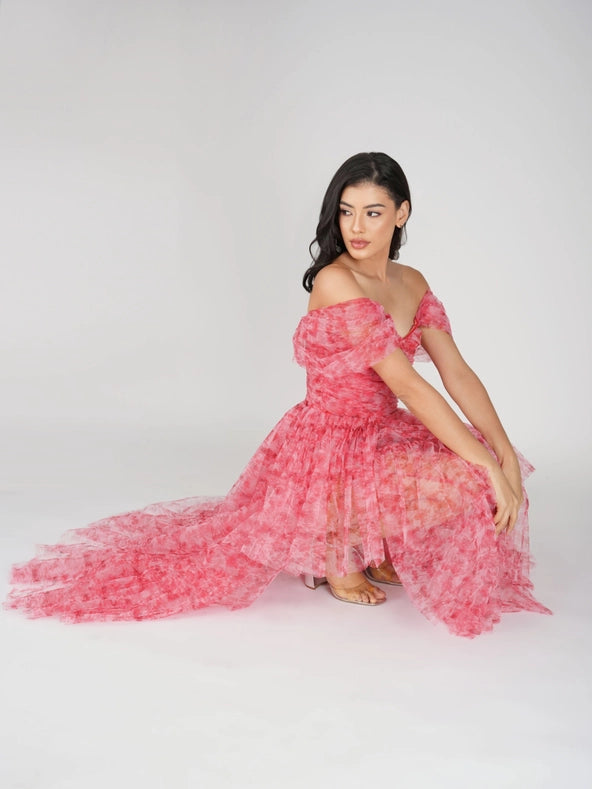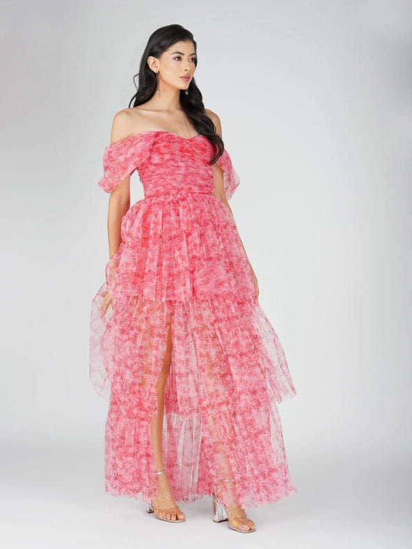 Sydney Tulle Maxi Dress in Red Print-Dress-Lace & Beads-6-Red-Urbanheer