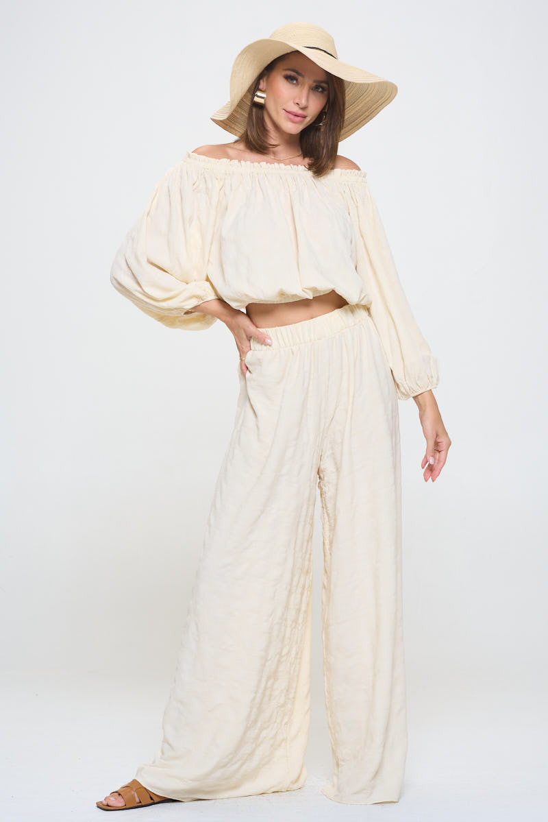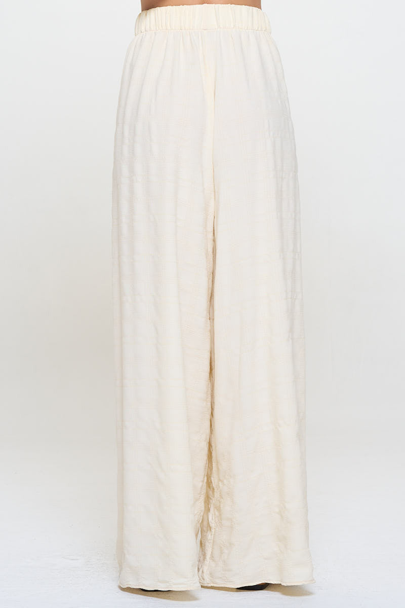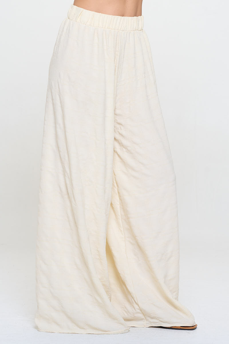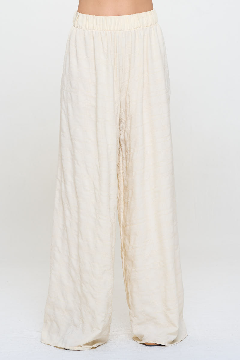 Textured Wide Leg Pants with Elastic Waistband-Pants-Reneecollection-Small-BEIGE-Urbanheer