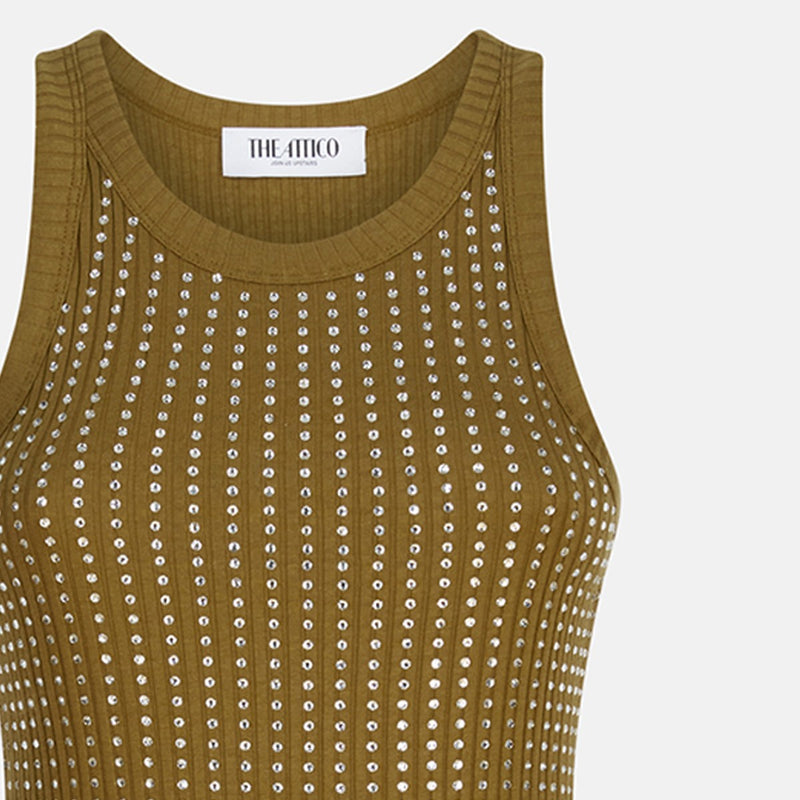 The Attico Military green mini dress with rhinestones
