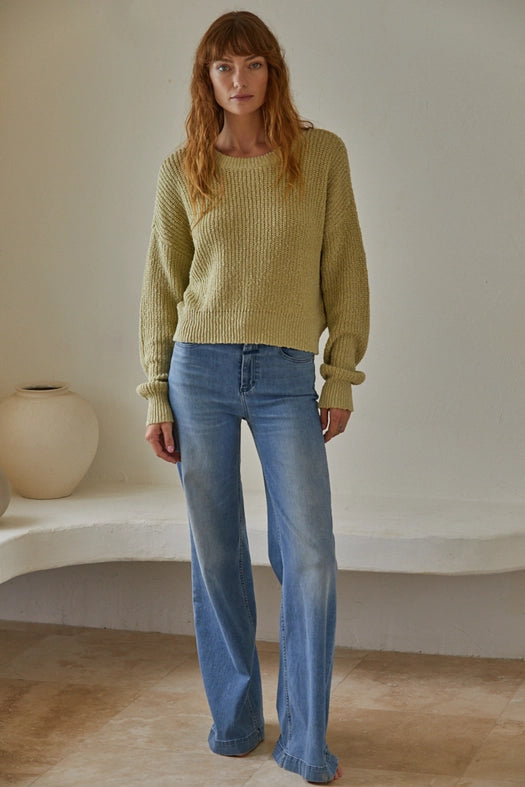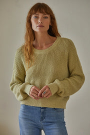 This knit sweater is made from soft cotton and features a round neck and long sleeves. With a pullover design, it is comfortable and easy to wear. Perfect for cooler weather, this top will keep you warm and stylish.