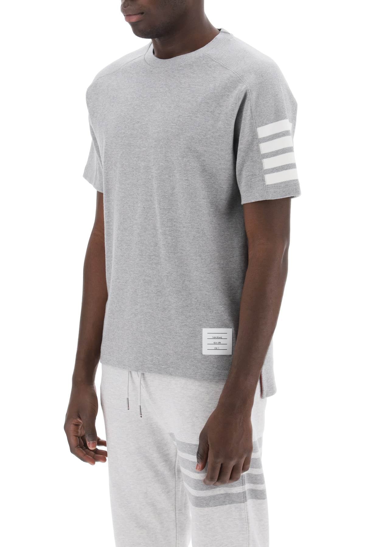 Thom Browne T-shirt crafted in solid cotton jersey with shoulder knitted inserts embellished with 4-Bar motif on the left side. It features crew neck and it is branded with Name Tag on the hem and tricolor grosgrain loop tab on the upper back and on the inside of the slits. Dropped-back hem, regular fit. The model is 187 cm tall and wears size 2 Thom Browne.
