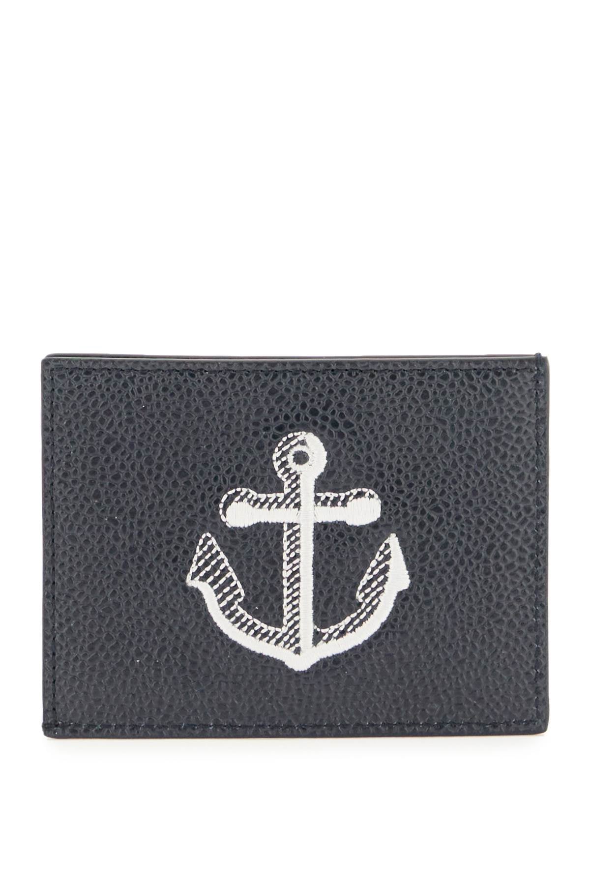 Expertly crafted by Thom Browne, this pebble grain leather cardholder features an embroidered anchor on the front and a tricolor grosgrain loop tab at the back. With three card slots and a bill compartment, it is the perfect accessory for staying organized and stylish. Available in classic blue, this piece is a must-have for spring and summer. Accessory Length = 10,5 cm, Accessory Height = 8 cm,