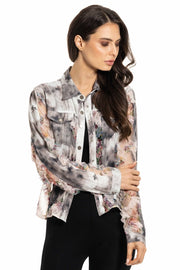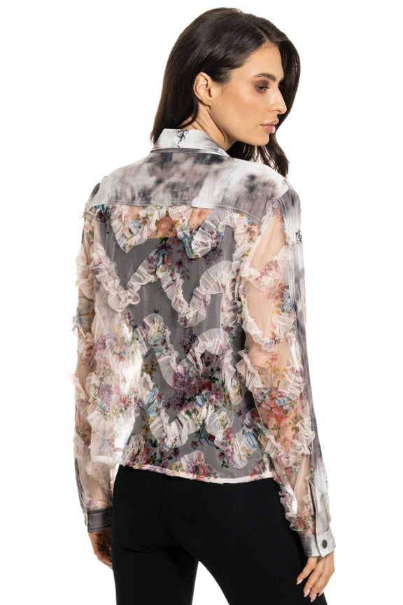 Elevate your wardrobe with our Tie-Dye Lightweight Jacket. The striking tie-dye design, sheer mesh sleeves, and vibrant floral details create an edgy yet feminine look. Made with lightweight fabric and a versatile button-front closure, this jacket is perfect for any Spring/Summer occasion. Hand wash only.