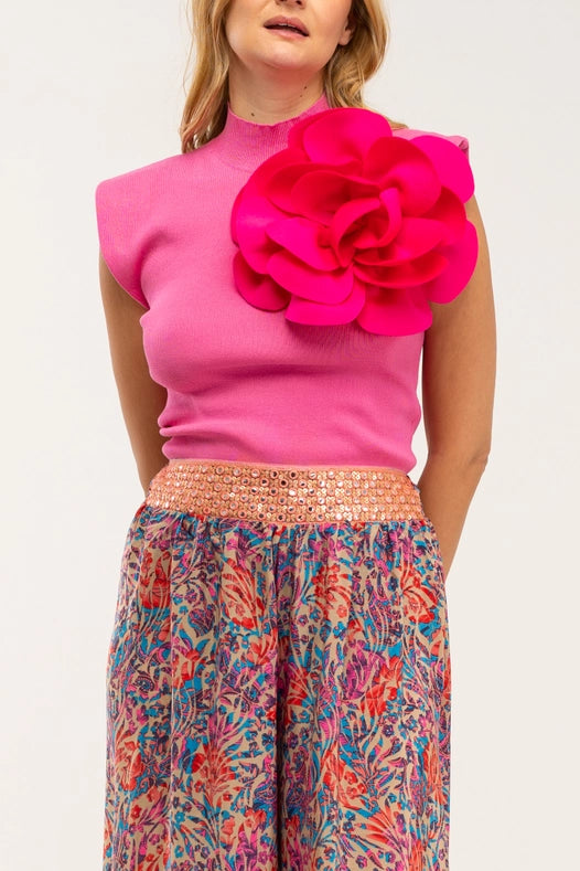 Introducing the TOP_FUCHSIA, a stylish addition to any wardrobe. Made with a fitted neck and crafted from high-quality materials, this knitted top offers both comfort and fashion. Plus, the removable flower brooch adds a touch of elegance to any outfit. Upgrade your look with TOP_FUCHSIA today.