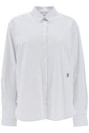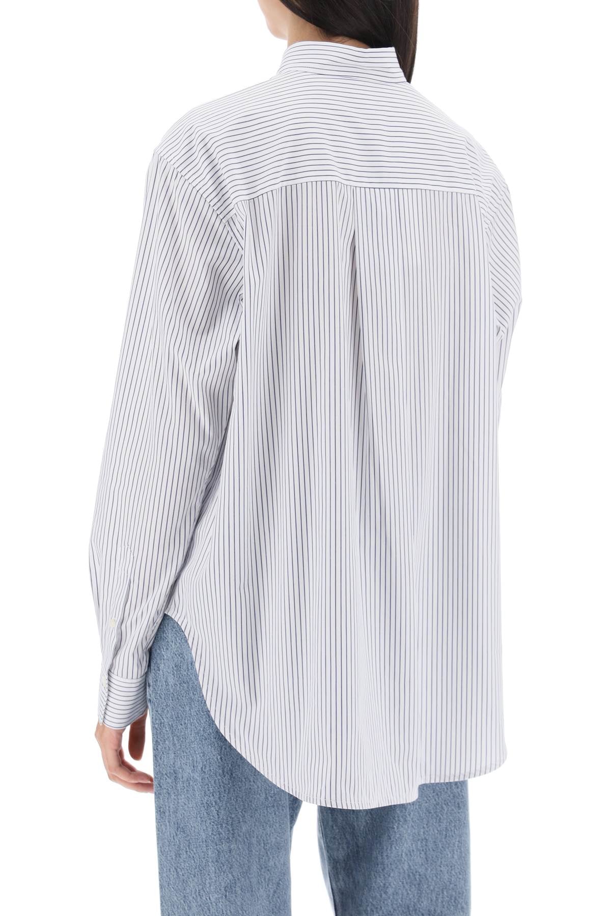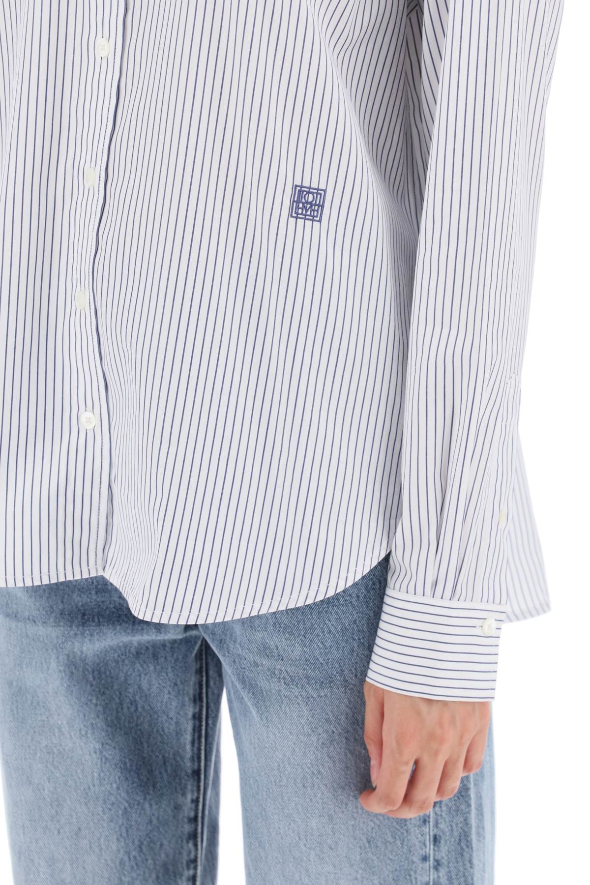Cut from organic cotton and lyocell poplin to an oversized fit, this Totême's shirt is animated by an all-over striped pattern and an embroidered monogram detail at the front. Classic button-up design with pointed collar and dropped-back curved hem. The model is 177 cm tall and wears a size EU 34.