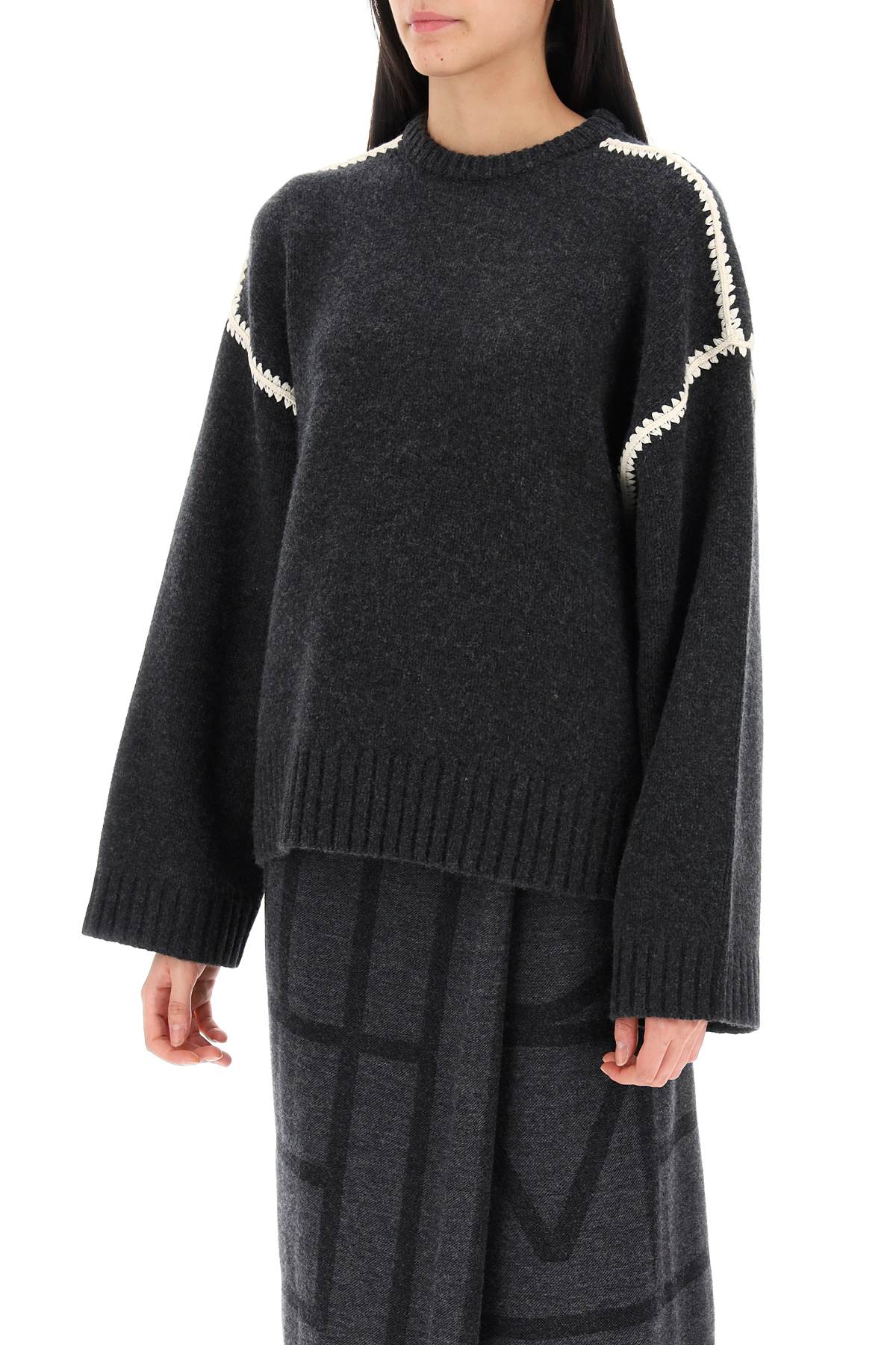 Toteme Sweater With Contrast Embroideries-Toteme-Grey-M-Urbanheer