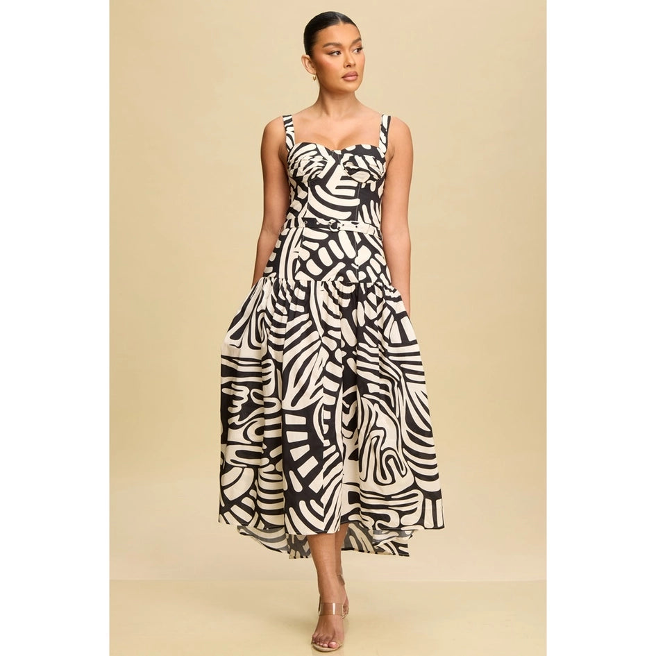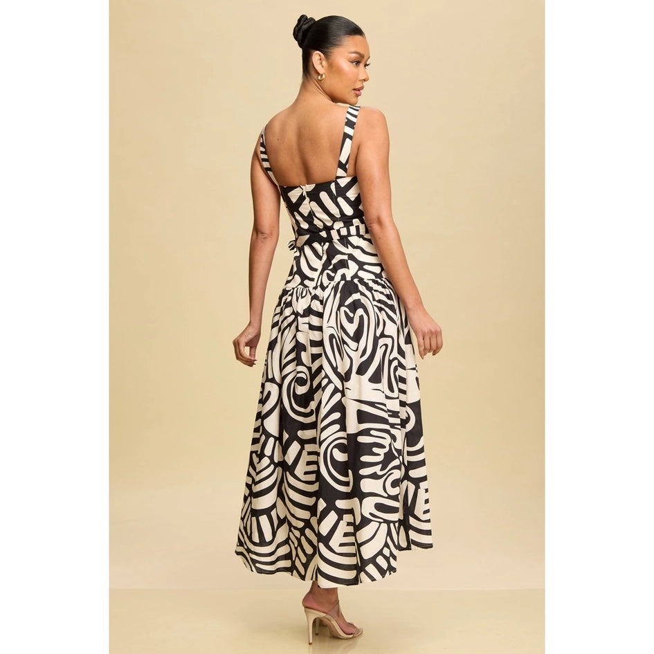Tribal Midi Belted Dress-Dress-Luxxel-S-IVORY-BLACK-Urbanheer