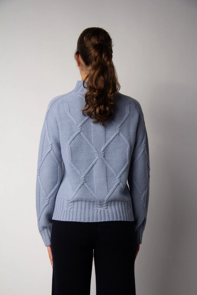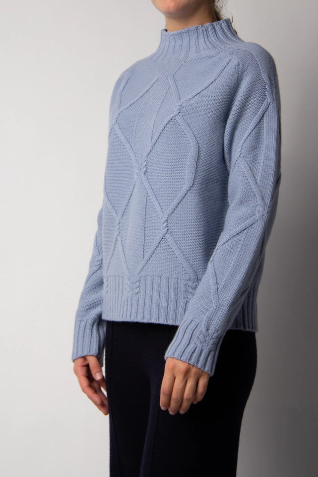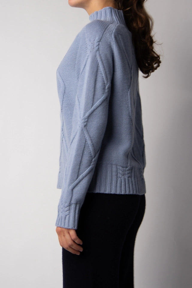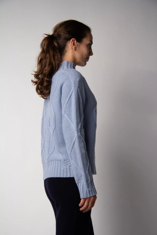 Turtleneck Sweater with Braids in Cashmere Blend Blu Dusty
