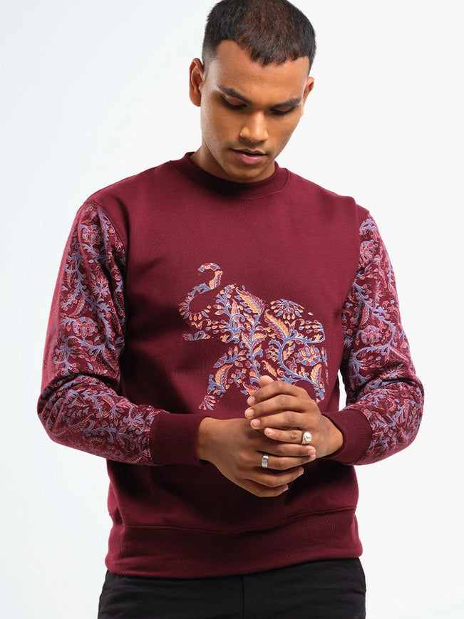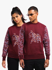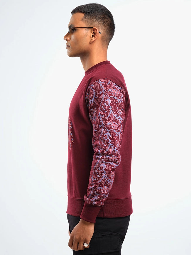 Unisex Printed Crewneck Sweatshirt - Maroon