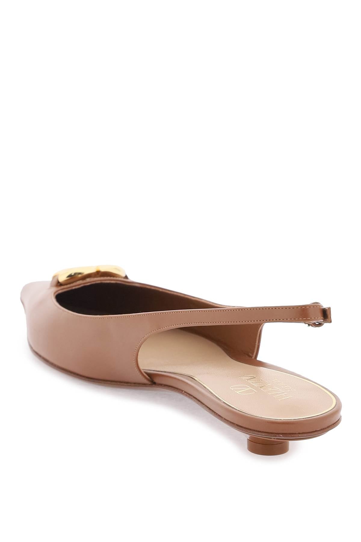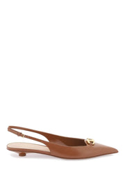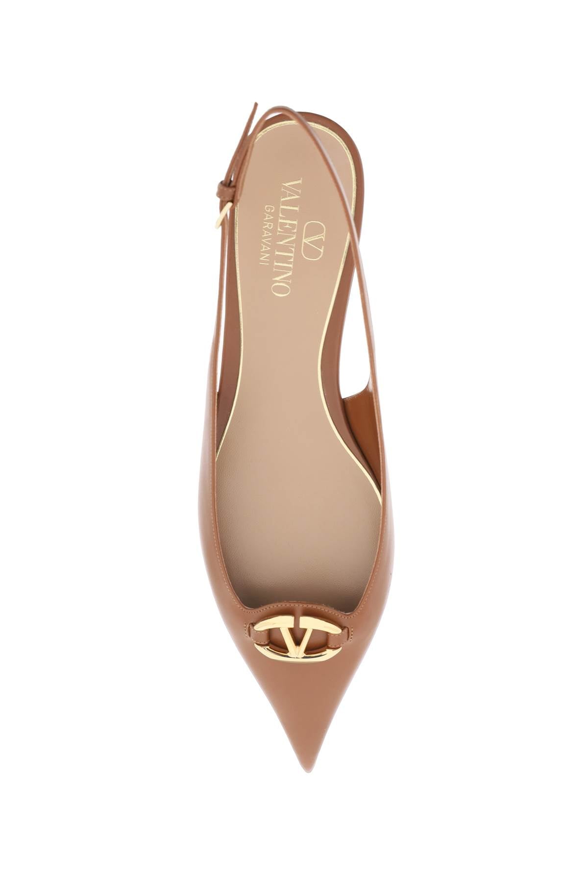 Introducing Valentino Garavani's slingback VLogo ballerina flats. Made with smooth leather and a gold metal VLogo detail, these pointed flats are both stylish and comfortable. With an adjustable strap, leather lining and insole, and a rubber-inserted leather sole, these flats are perfect for any occasion.