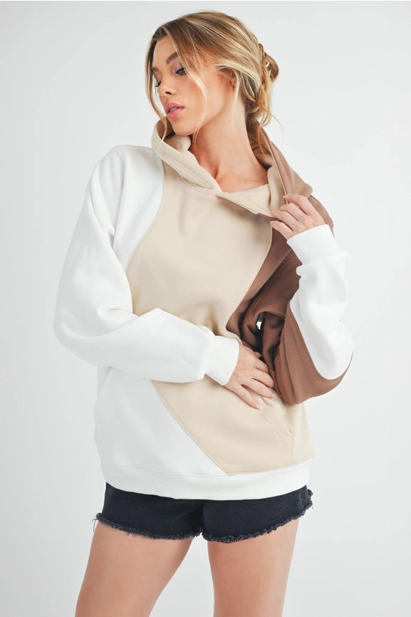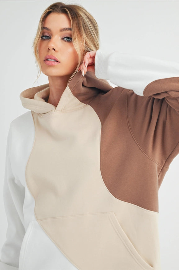 Discover comfort and style with our Wavey Hoodie. The oversized design and soft French terry fabric provide ultimate comfort from studio to street. The fleecy interior, seamed wave pattern, and neutral color block palette add a touch of sophistication to any outfit. Crafted with care, this hoodie is made from a blend of 66% polyester and 34% cotton.