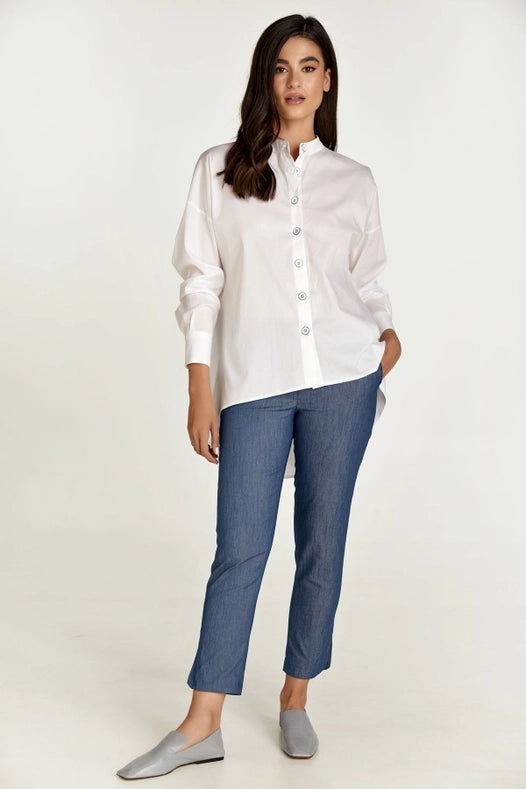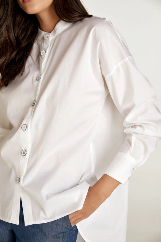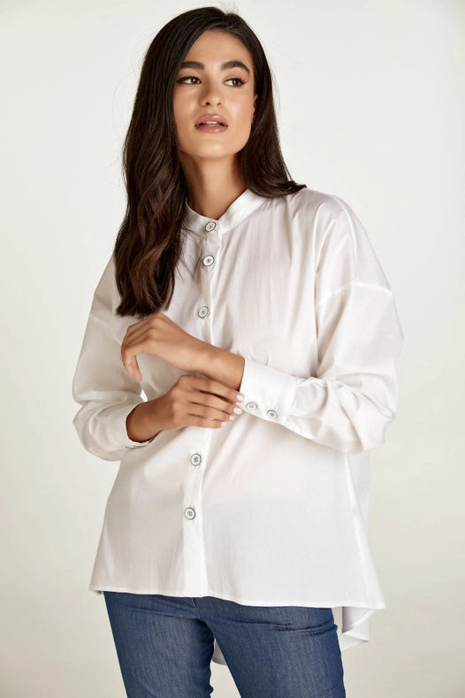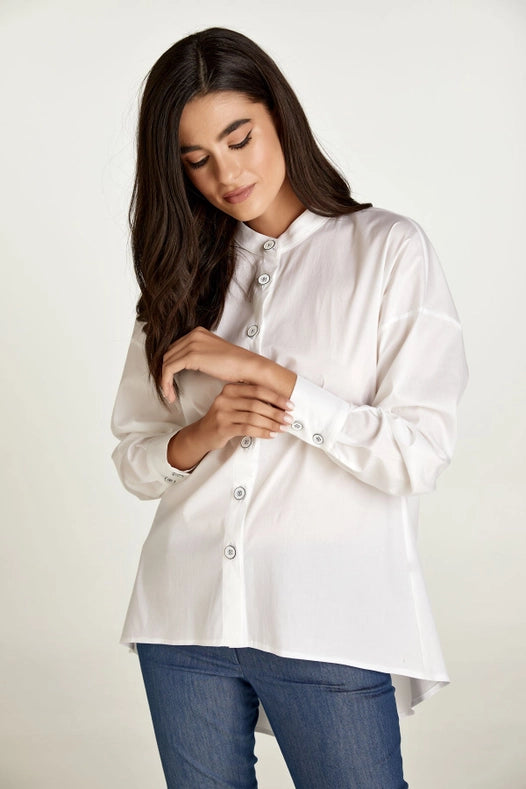 White Blouse with Mandarin Collar-BLOUSE-Conquista-S-Urbanheer
