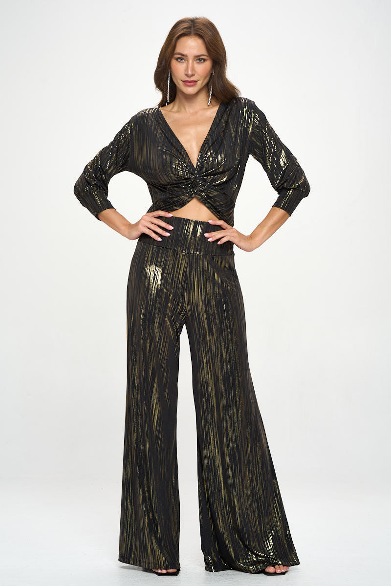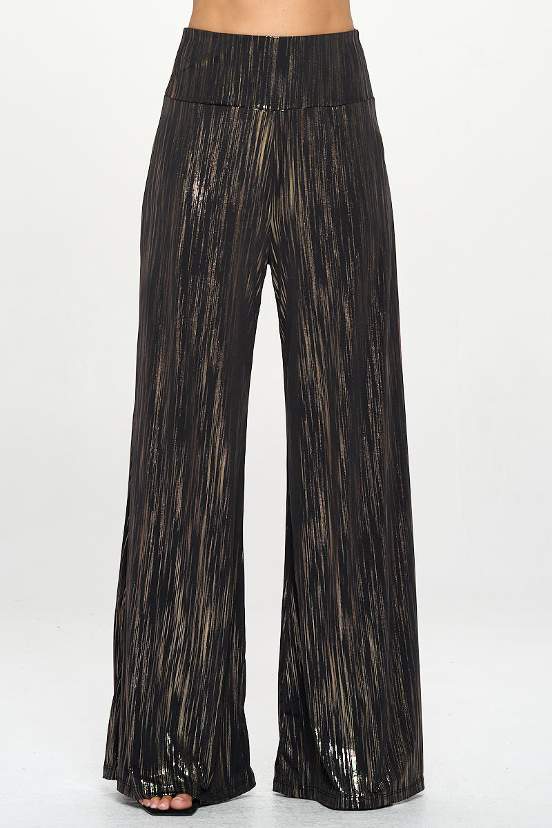 Made in USA Wide Leg Pants with Gold Foil Detail. Available in other Colors.