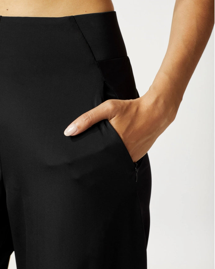Upgrade your wardrobe with our Woke Pant. Crafted in Canada with technical jersey, this pant offers a relaxed fit, elastic waistband and side seam pockets with an invisible zipper. Machine washable and made with 80% Polyamide and 20% Elastane, perfect for fall/winter. Elevate your style and comfort with Woke Pant.