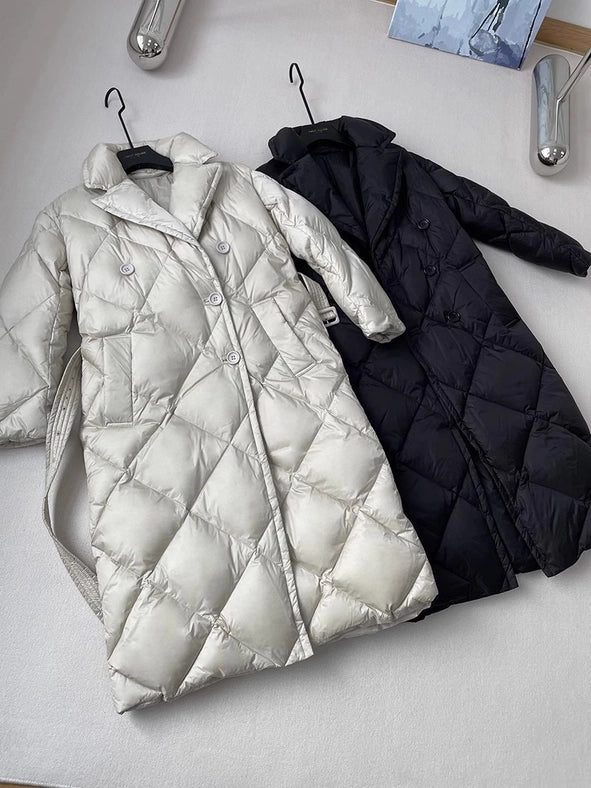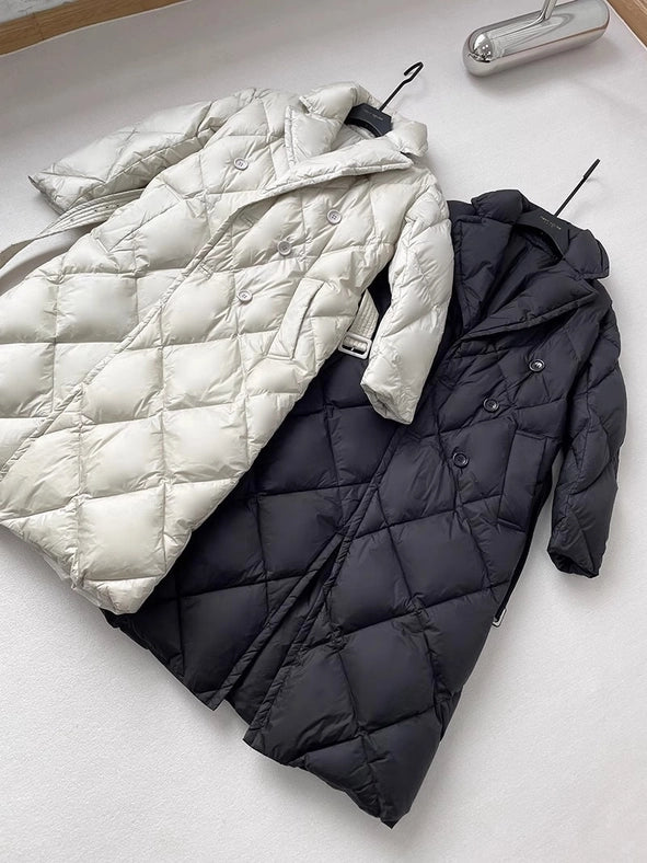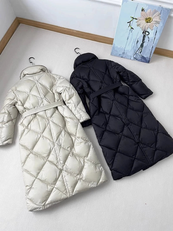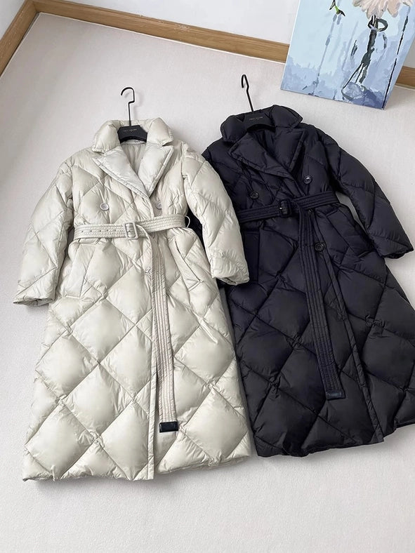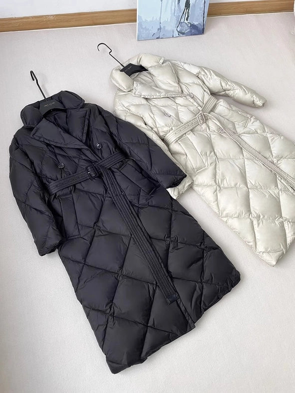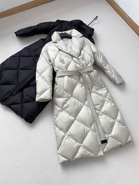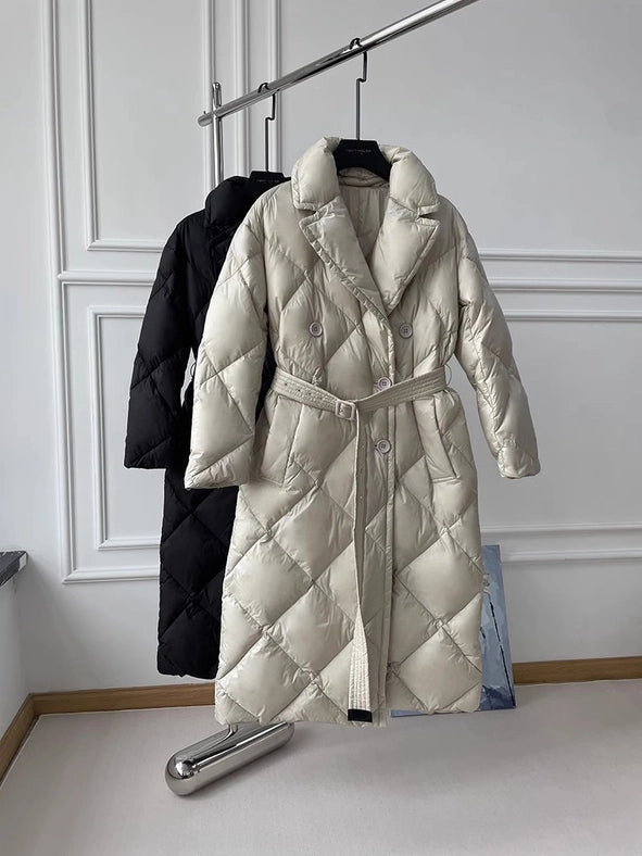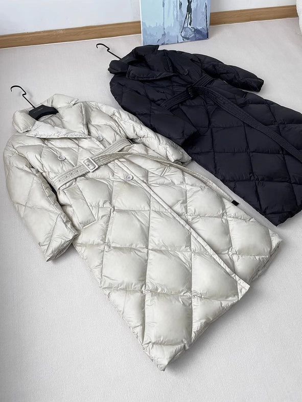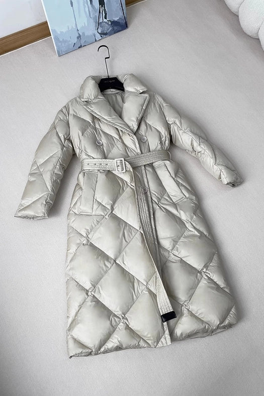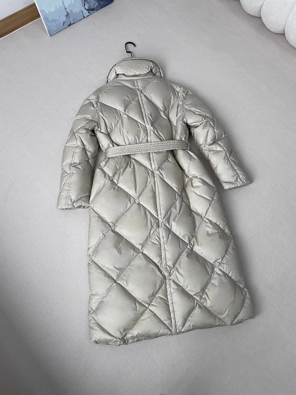 Expertly designed for ultimate warmth and style, the Women Long Down Jacket features a belted waist for a flattering silhouette. This high-quality winter coat is perfect for braving the cold weather, keeping you both cozy and fashionable. Don't compromise on fashion or function with this essential winter piece.