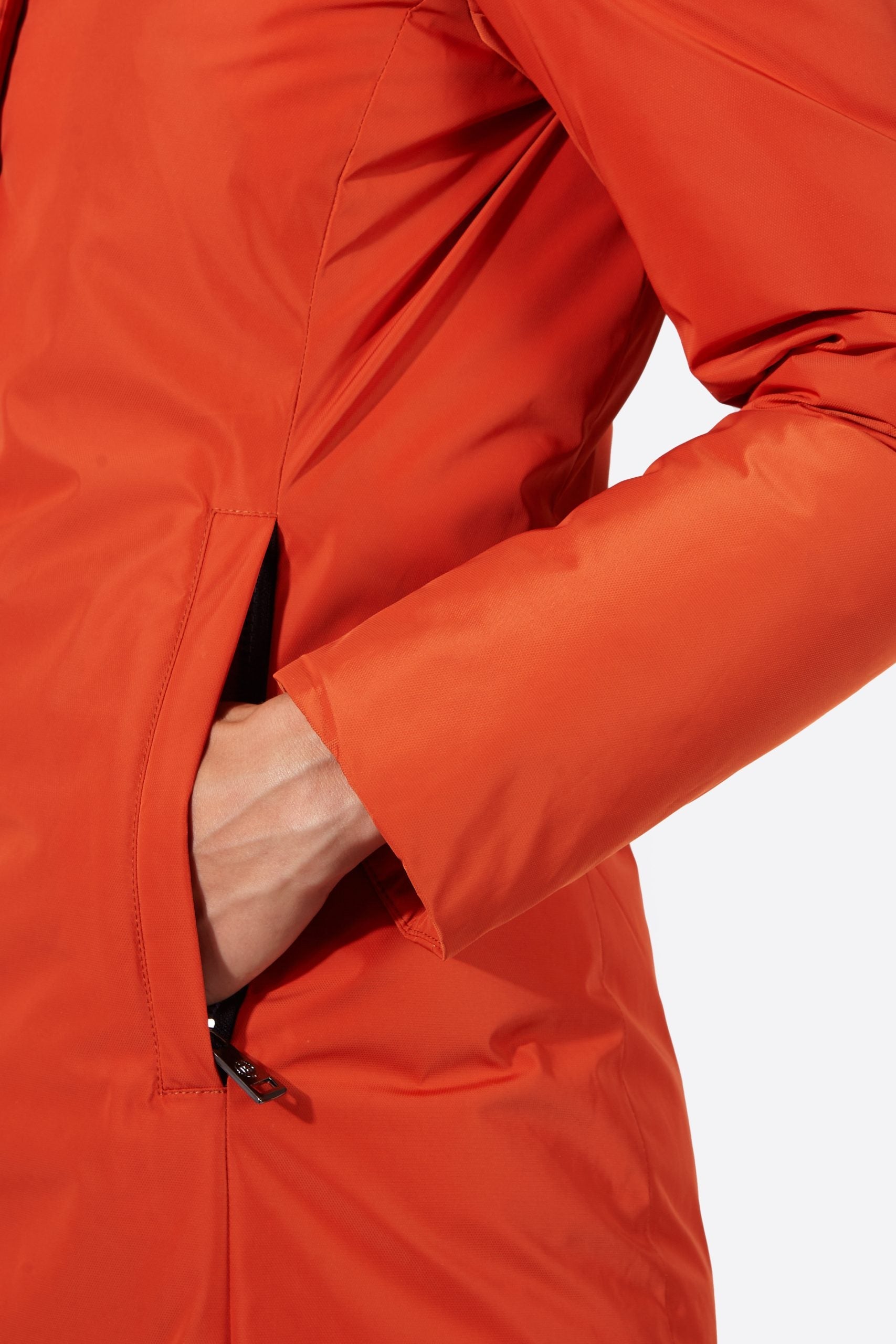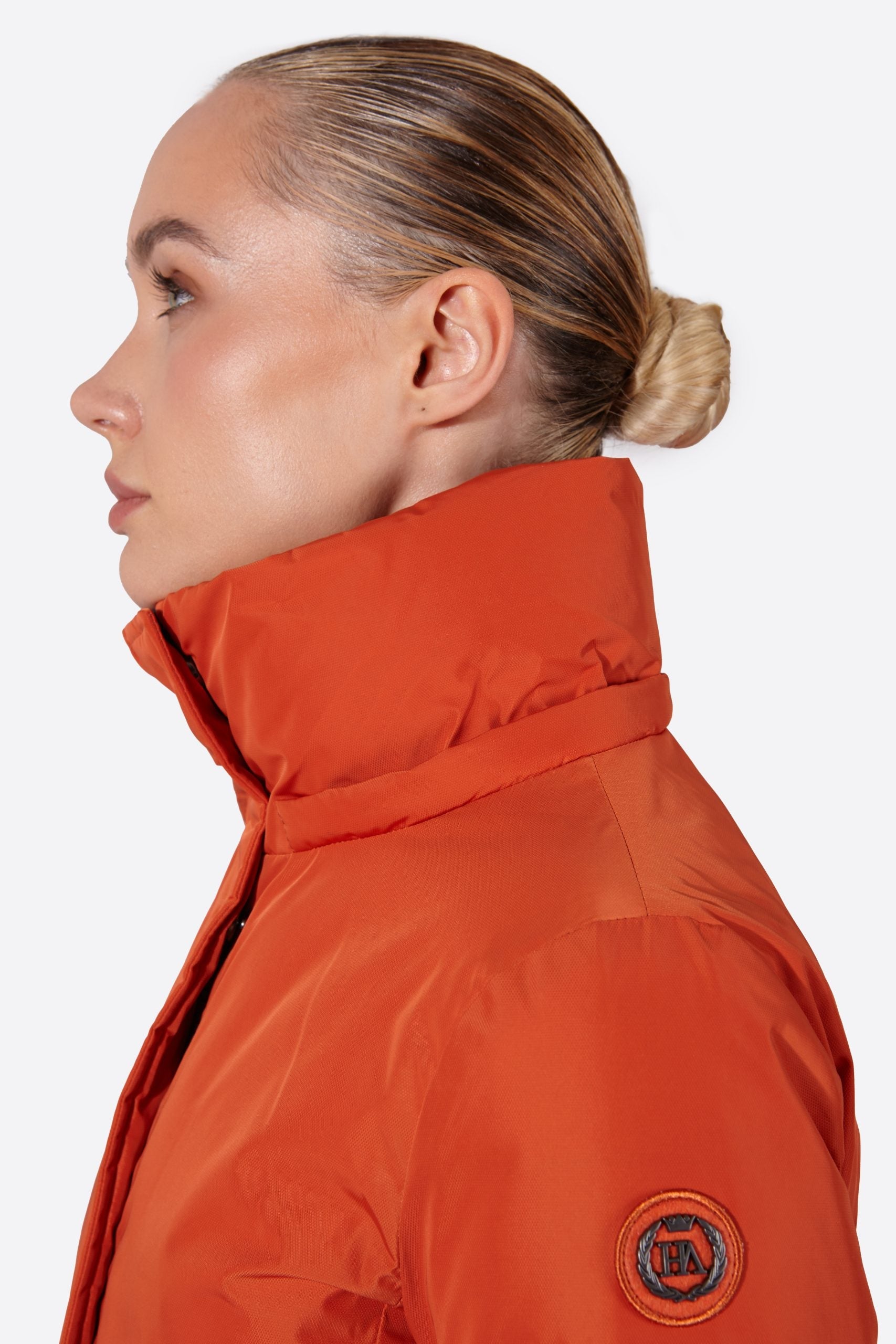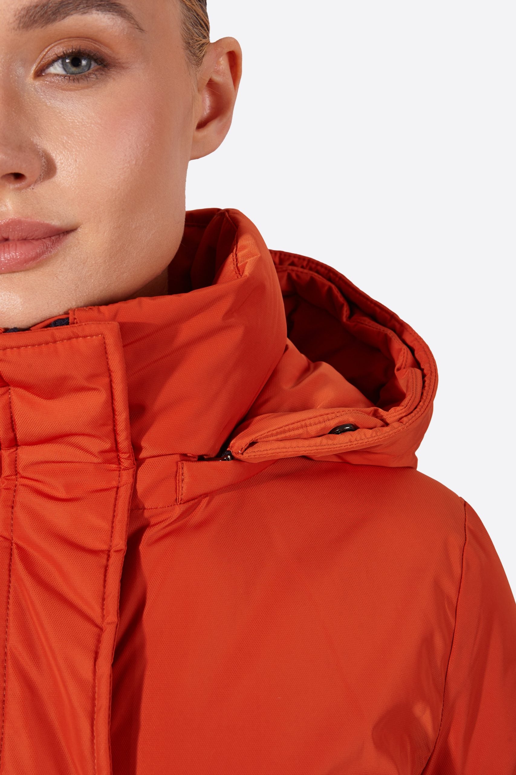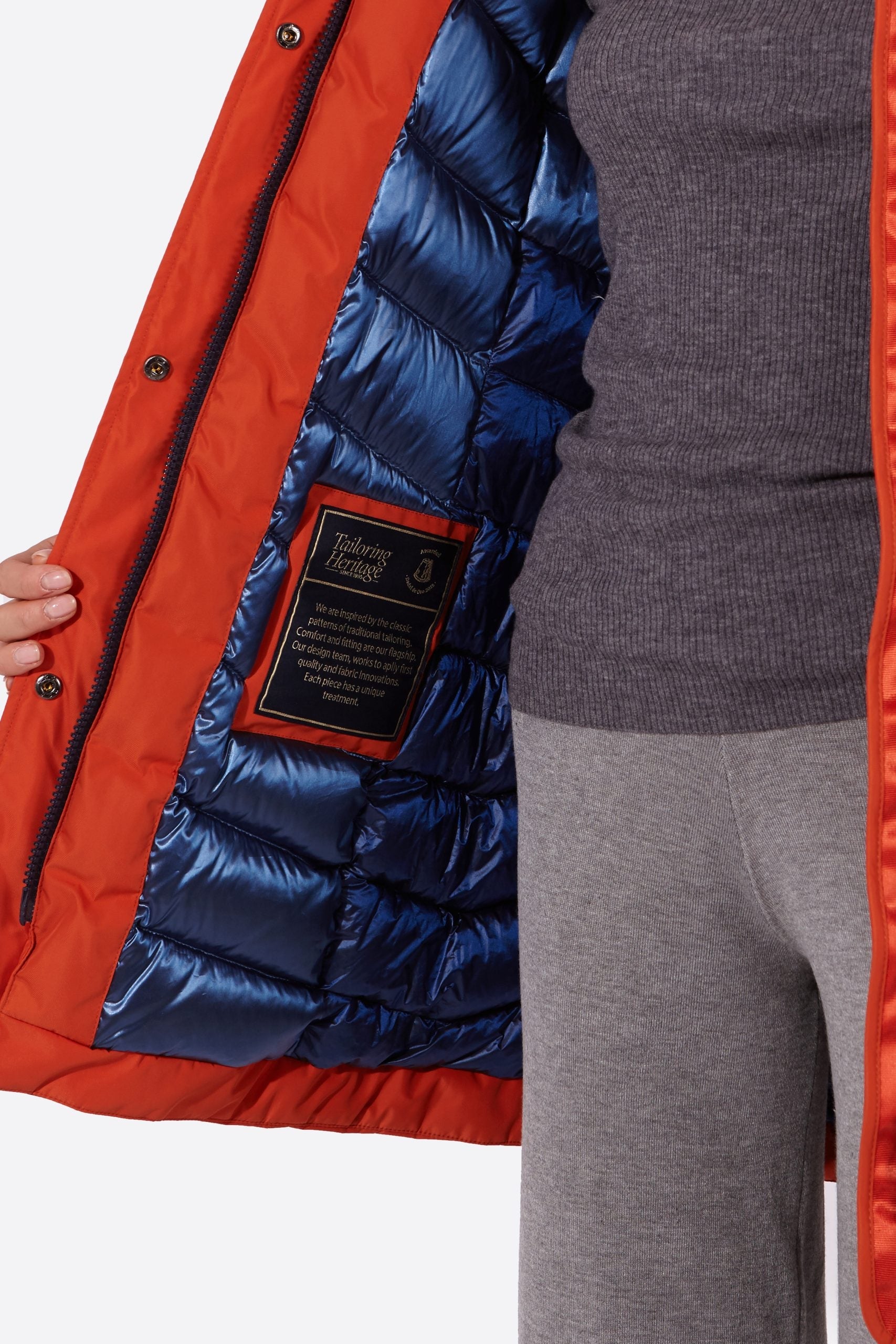 The Women's parka SNOWFALL offers a flattering slim fit and is made with water repellent fabric and an inner windproof membrane for maximum protection. A detachable hood with racoon fur provides added warmth and style. The central closure features a double zipper and inner sock, while zippered pockets and piping add functional details. Filled with 90% down and 10% feather, this parka guarantees warmth and comfort.