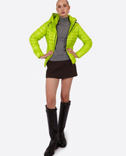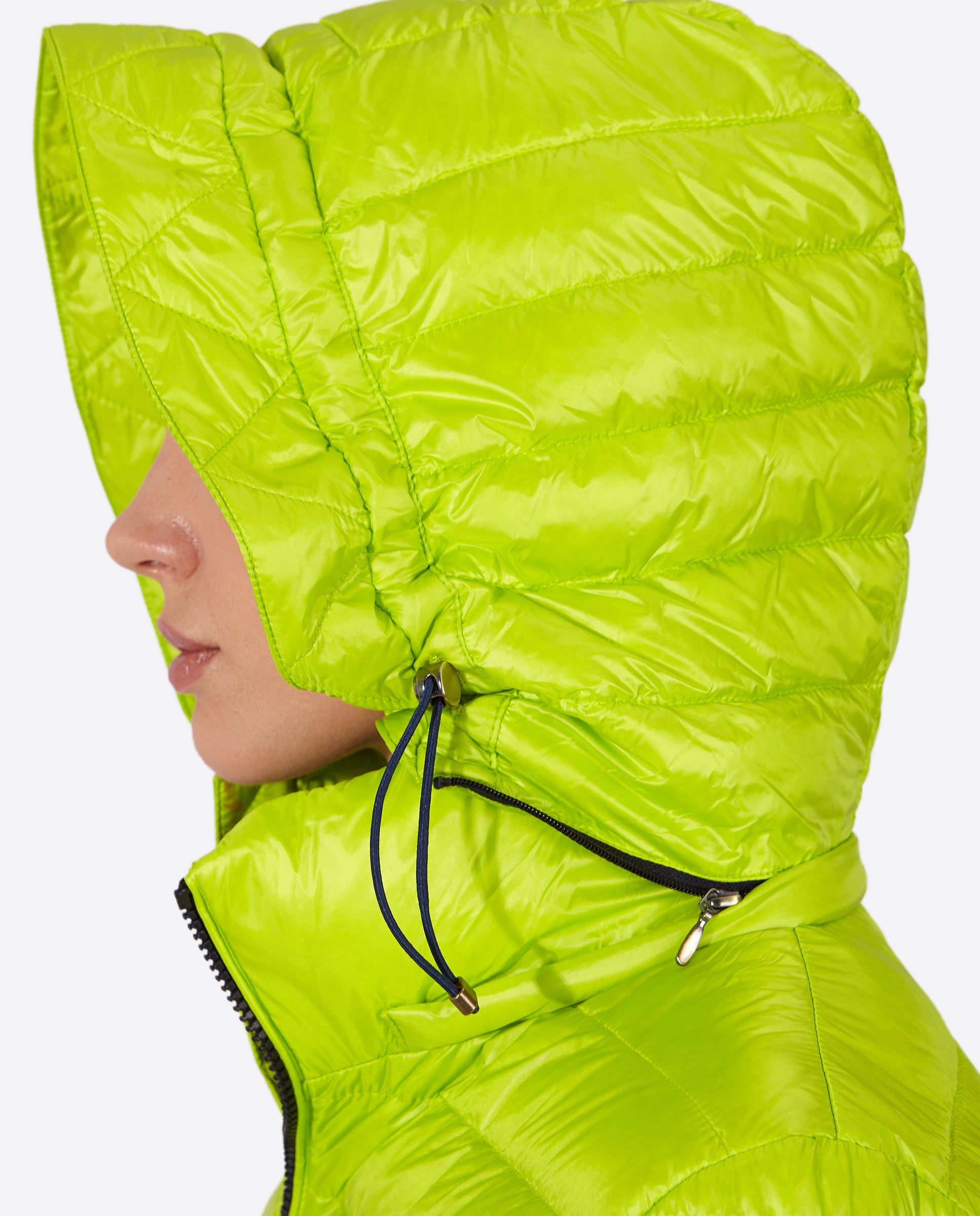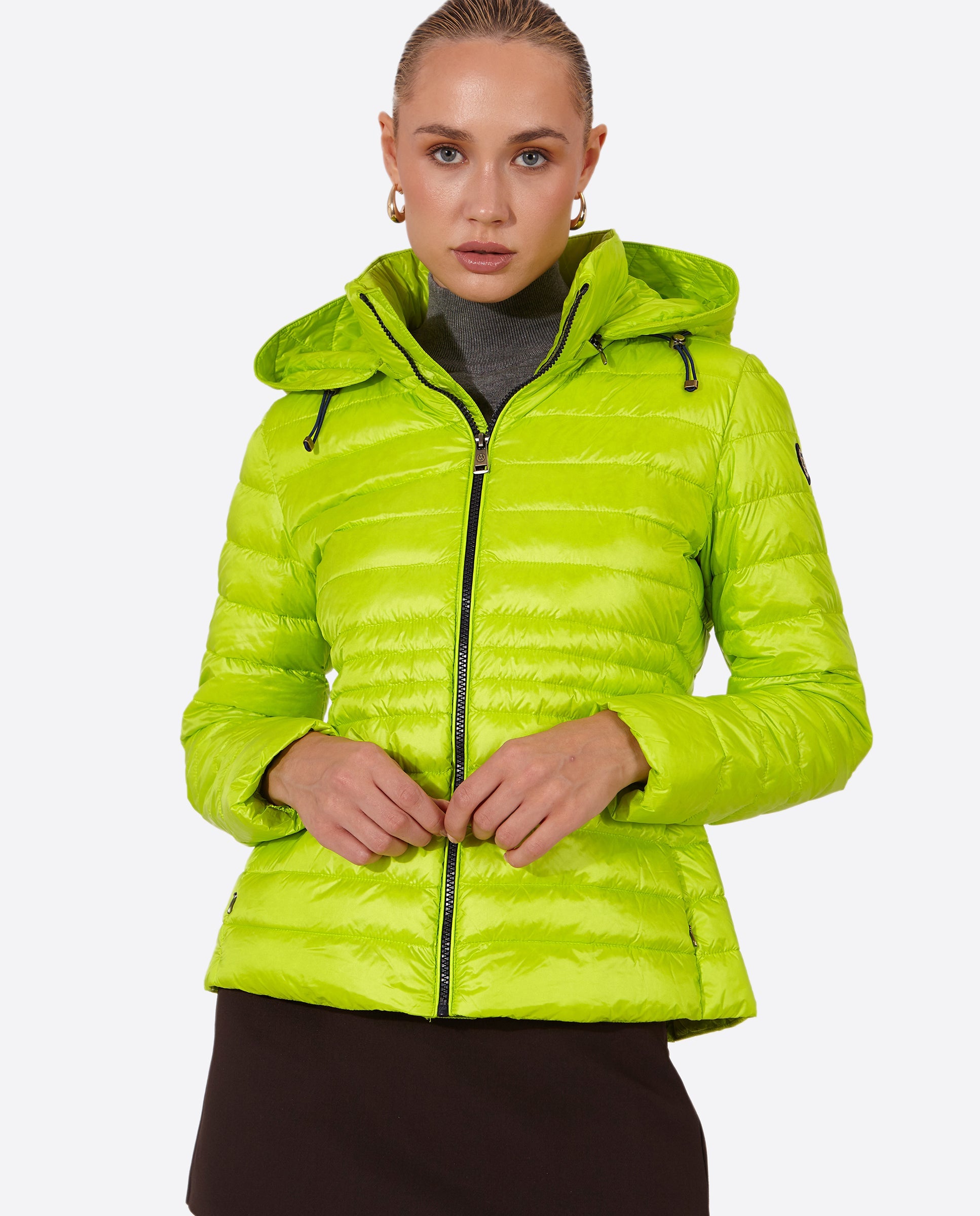 As a down jacket expert, I recommend the Women's HALLEY short down jacket. With a detachable hood and exposed zippered pockets, this jacket provides practicality and style. The 90% down and 10% feather filling ensures warmth and the 60 cm length offers full coverage. Zip up and stay cozy with HALLEY.