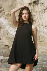 Woven 100% Linen Mini Baby Doll Dress Black