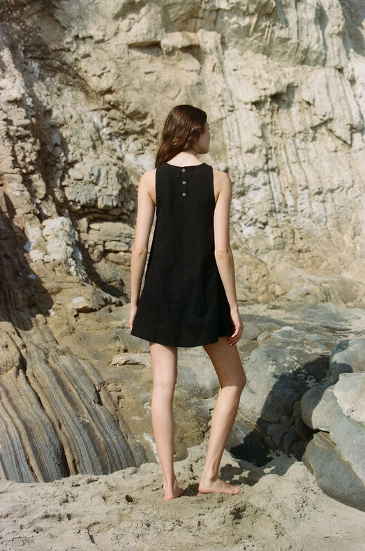 Expertly crafted from 100% linen, the Novella Mini Dress is perfect for any occasion. Featuring a delicate round neck, sleeveless design, and button back, this dress offers both comfort and sophistication. Complete with a soft cotton lining, it's a must-have addition to your wardrobe.