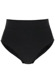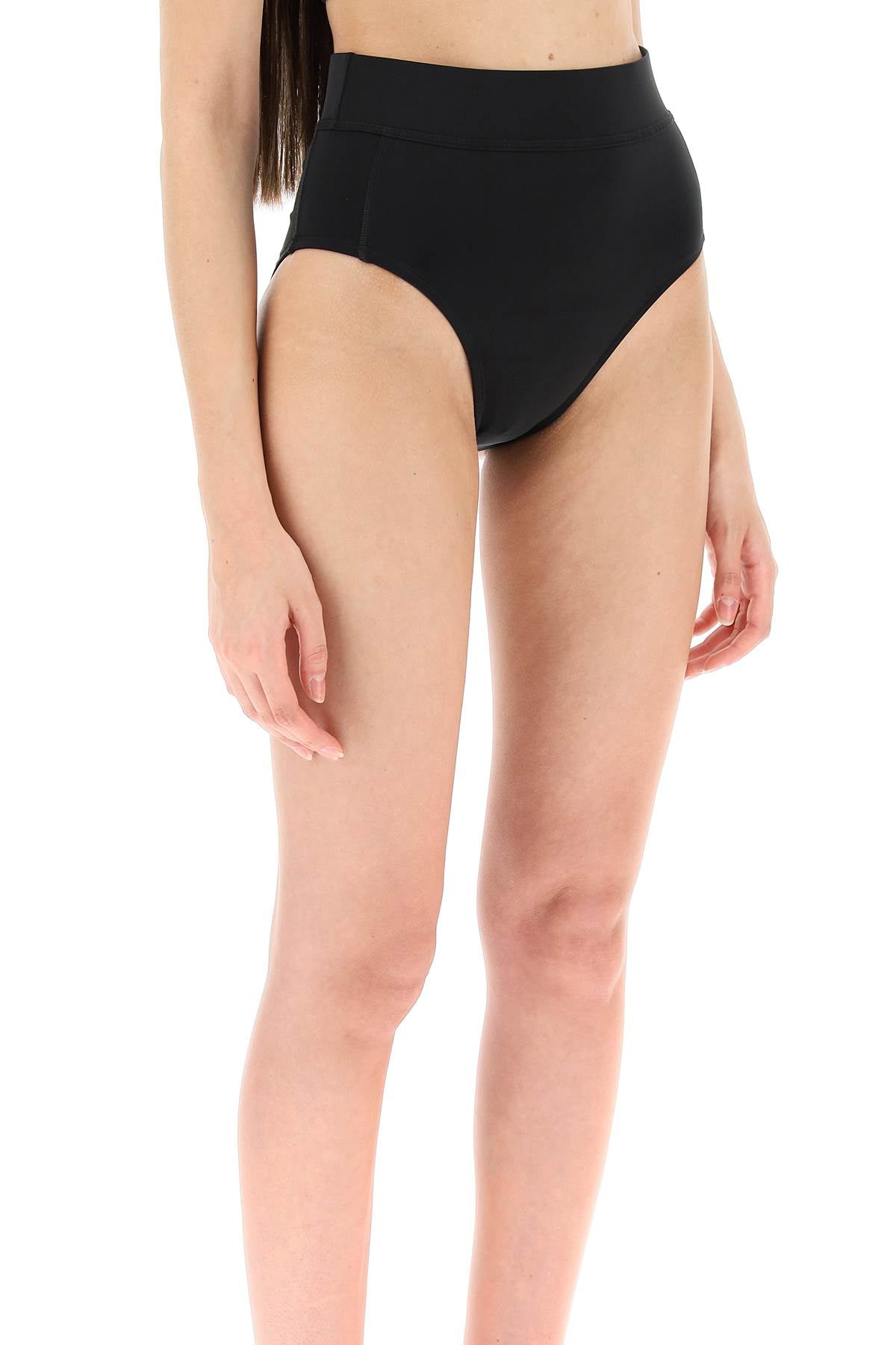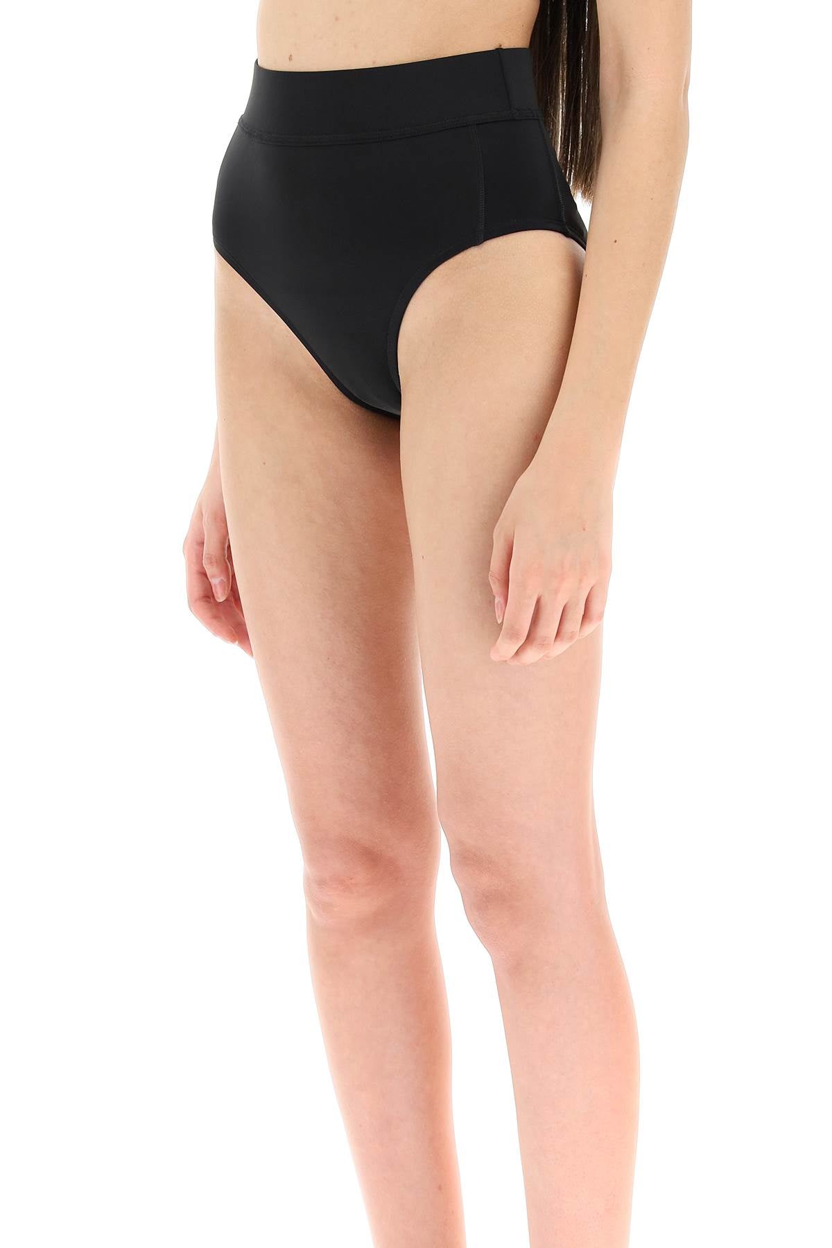 High-waisted, lined bikini slip by Y-3 made of lycra with a contrasting rubberized logo at back. The model is 177 cm tall and wears a size XS.