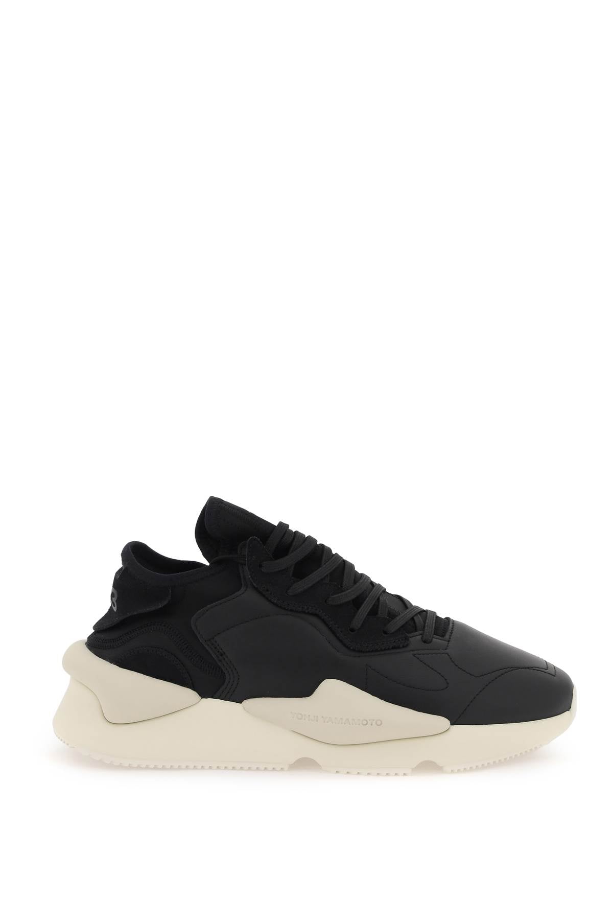 The Y-3 Kaiwa two-tone sneakers are a collaboration between Yohji Yamamoto and Adidas, crafted with soft leather and techno fabric accents. With a rubberized logo, removable leather insole, and contrasting rubber sole, these sneakers offer both style and comfort. Perfect for any casual or athletic occasion.