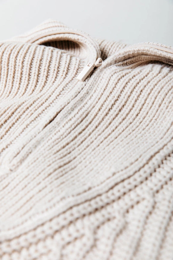 The Yfke Knit in Fog Beige is a stylish and practical zip sweater. Made from 100% acrylic, it is hand-washable and can be ironed or steamed at a low temperature. The regular fit and zipper closure make it a comfortable and versatile addition to any wardrobe.