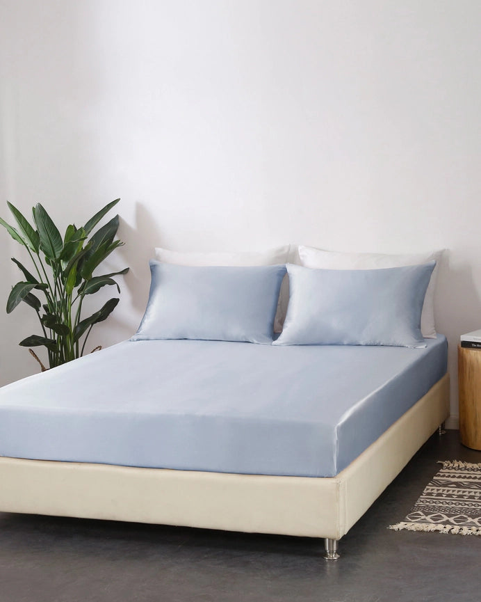 22 mm 3PCS Fitted Sheet Set Silver Blue