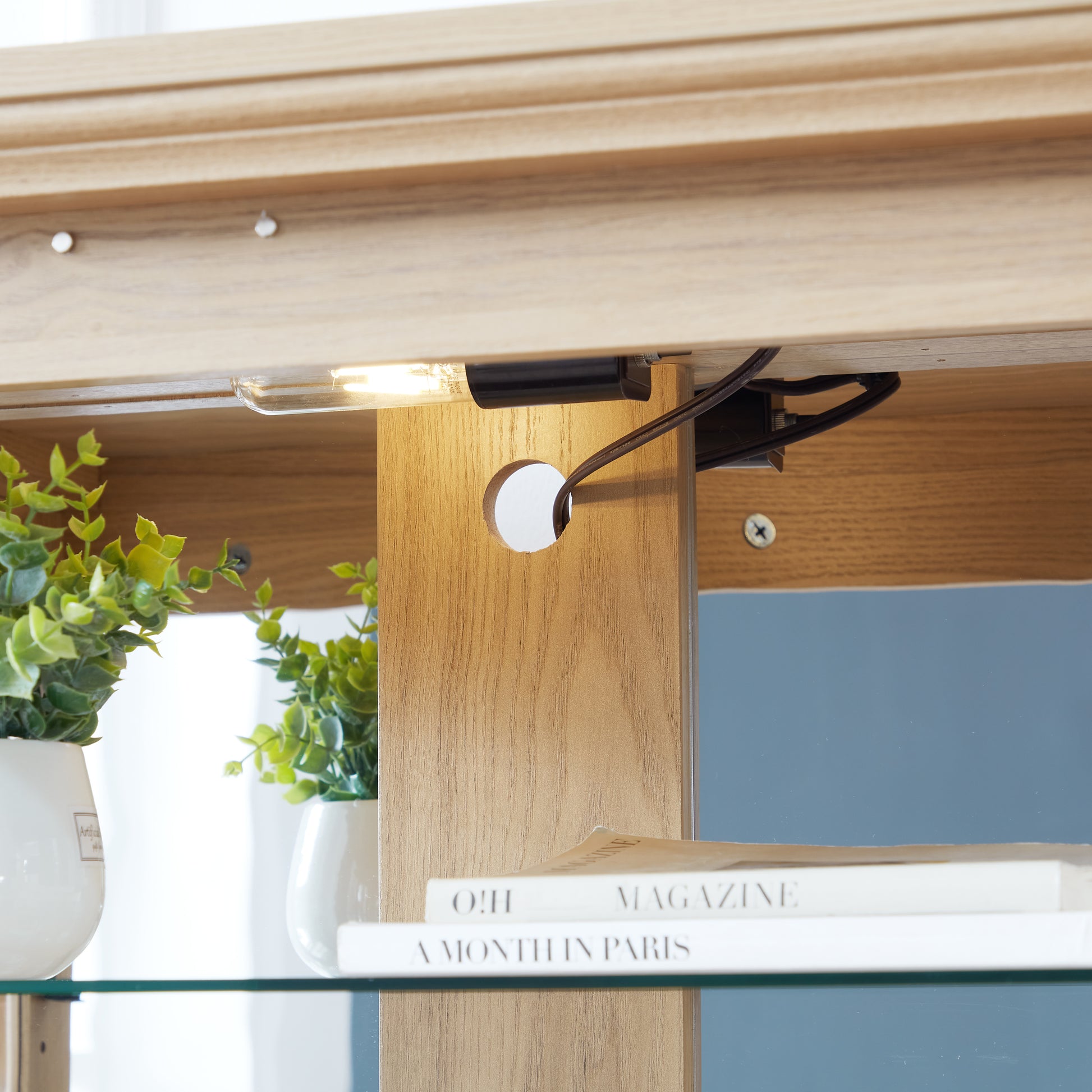- Integrated Lighting: The included light bulb illuminates your displayed items beautifully, making this glass cabinet perfect for showcasing your favorite possessions, whether it’s a liquor cabinet or a bookshelf.