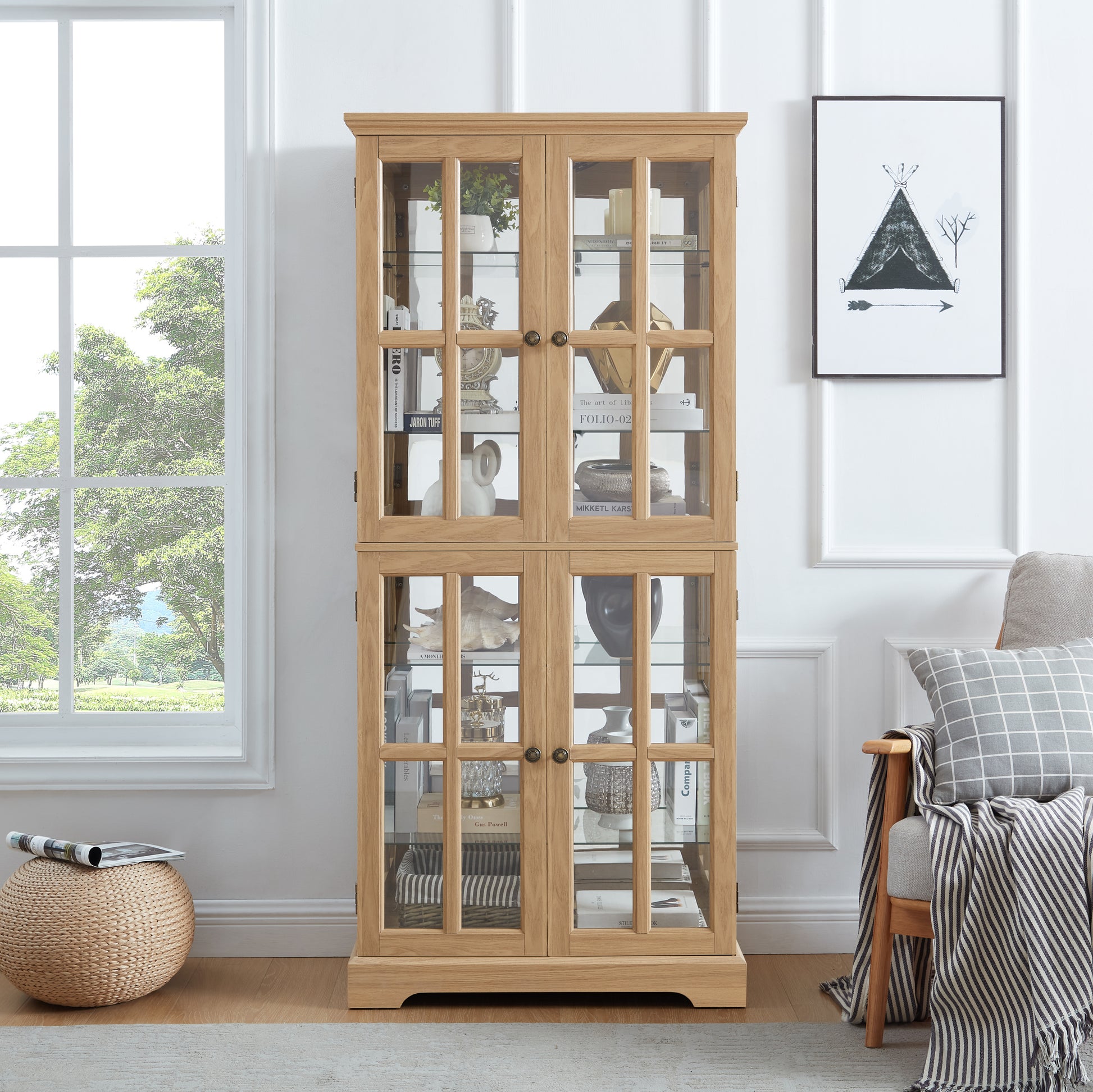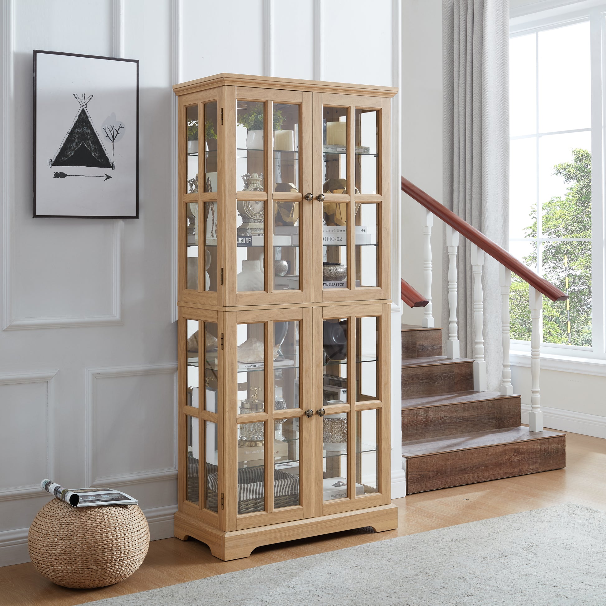 - Timeless Design: Our Antique Glass High Cabinet features a classic grid door design and double-opening doors, enhancing your home decor while providing easy access to your treasures, whether it's for a bookcase or a display for collectibles.