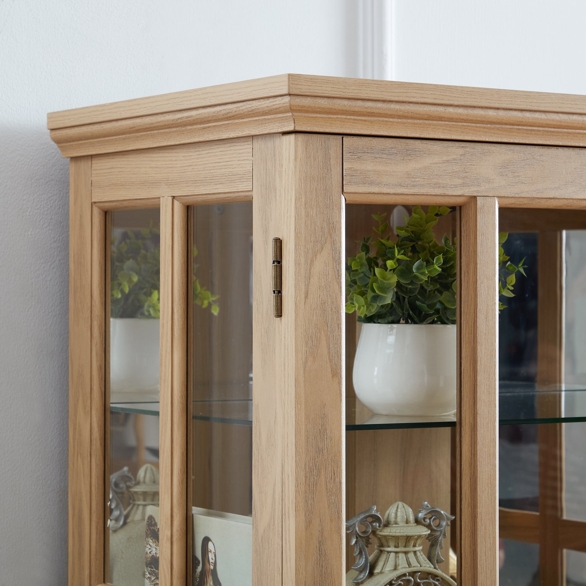 - Premium Materials: Crafted from high-quality glass and MDF, complemented by elegant metal embossed handles and a stunning acrylic back panel, this antique cabinet is both durable and visually appealing, adding a sophisticated touch to any room.