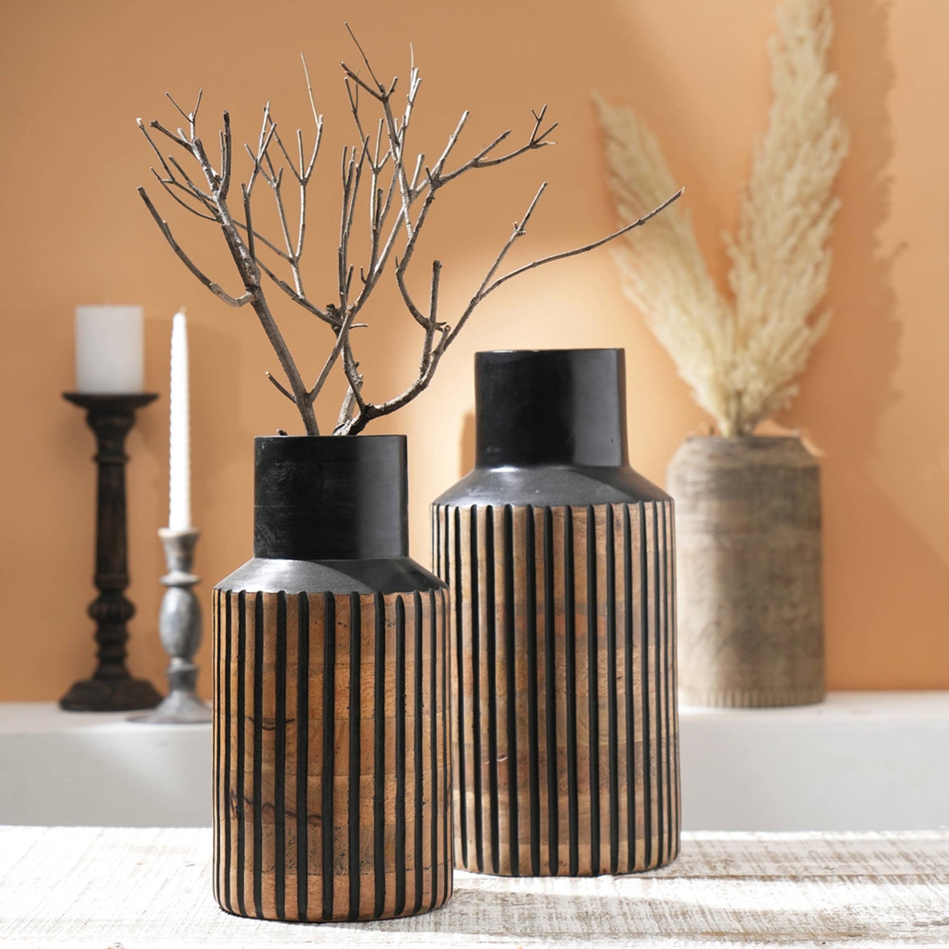 Decorative Handcrafted Accent Wood Vase For Living Room-7.5X15.5'