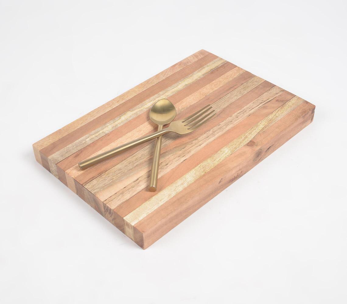 Disclaimer :Mango wood has a beautiful straight, curly or interlocked grain pattern. Textural nuances like knot holes, scratches and blemishes are highlights of natural wood, lending a distinct rustic flavor to the offerings. While mango wood is usually golden brown, it may sometimes have variations that have a yellowish tint, or feature muted black or pink streaks across the surface | Though naturally smooth, acacia touts a distinctive straight or wavy grain pattern. Textural nuances like knot holes, scratches and blemishes are highlights of natural wood, lending a distinct rustic flavor to the offerings. It is typically a medium to dark brown, either red, gold, or tan