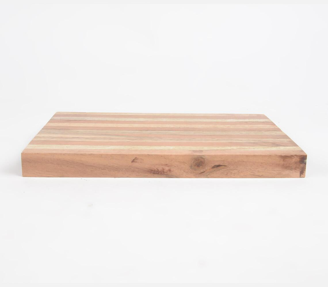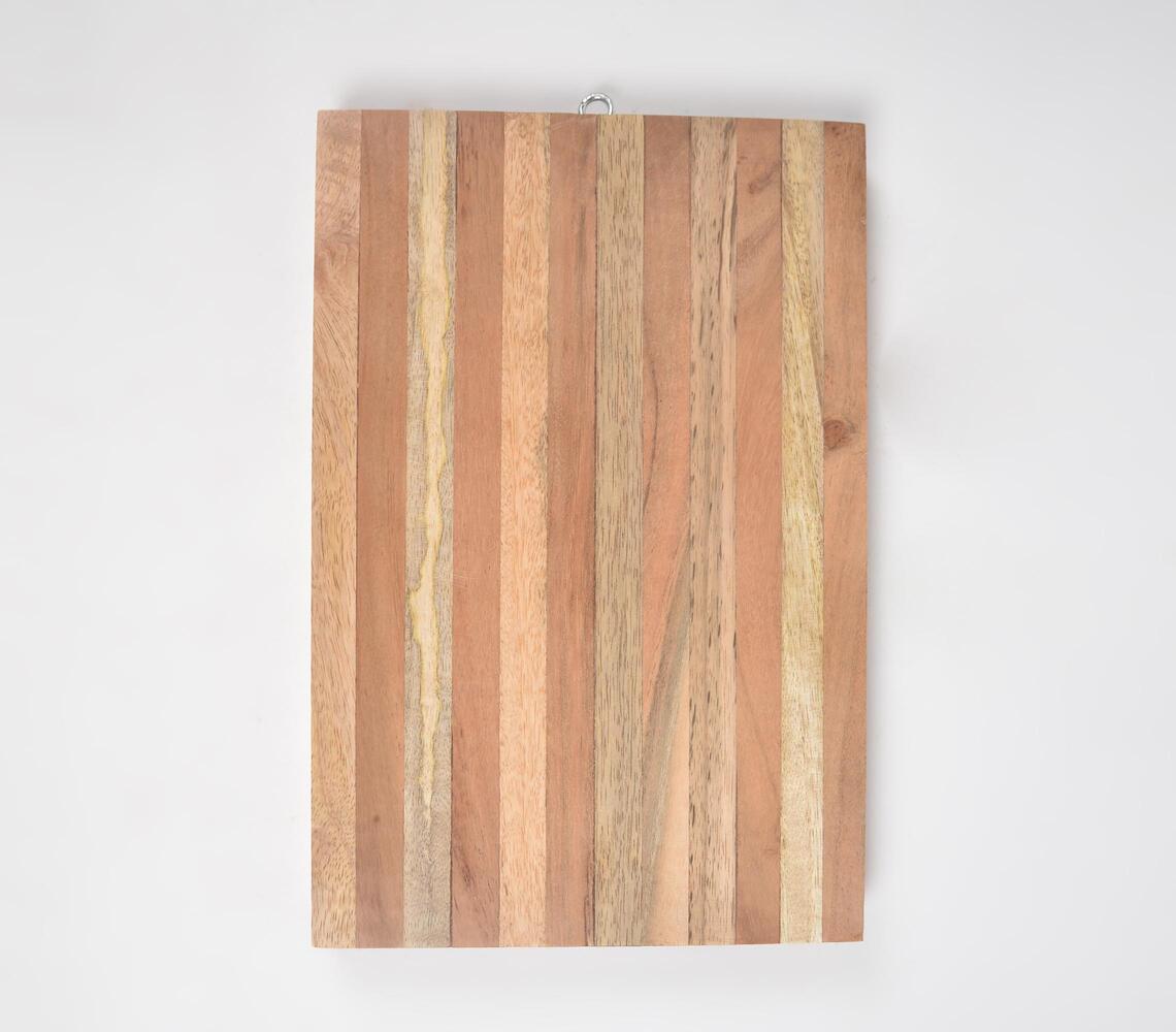 Lending a striking contrast to contemporary spaces, Q Bazaar brings forth this chopping board which will certainly bring elegance to any kitchen! Flaunting the natural beauty of wood, it will seamlessly blend in any contemporary kitchen. Multi-functional in nature, it can also be used as a serving platter. Thoughtfully designed and exquisitely crafted, this stunning offering has been hand cut by highly adept artisans from North India. Although, the advent of industrialization has brought about new mechanized techniques, artisans from North India prefer to stick to the basics, working with rudimentary, hand-held tools like sharp chisels, hammers, cutters and simple lathes to showcase their superior craftsmanship that is hard to replicate!