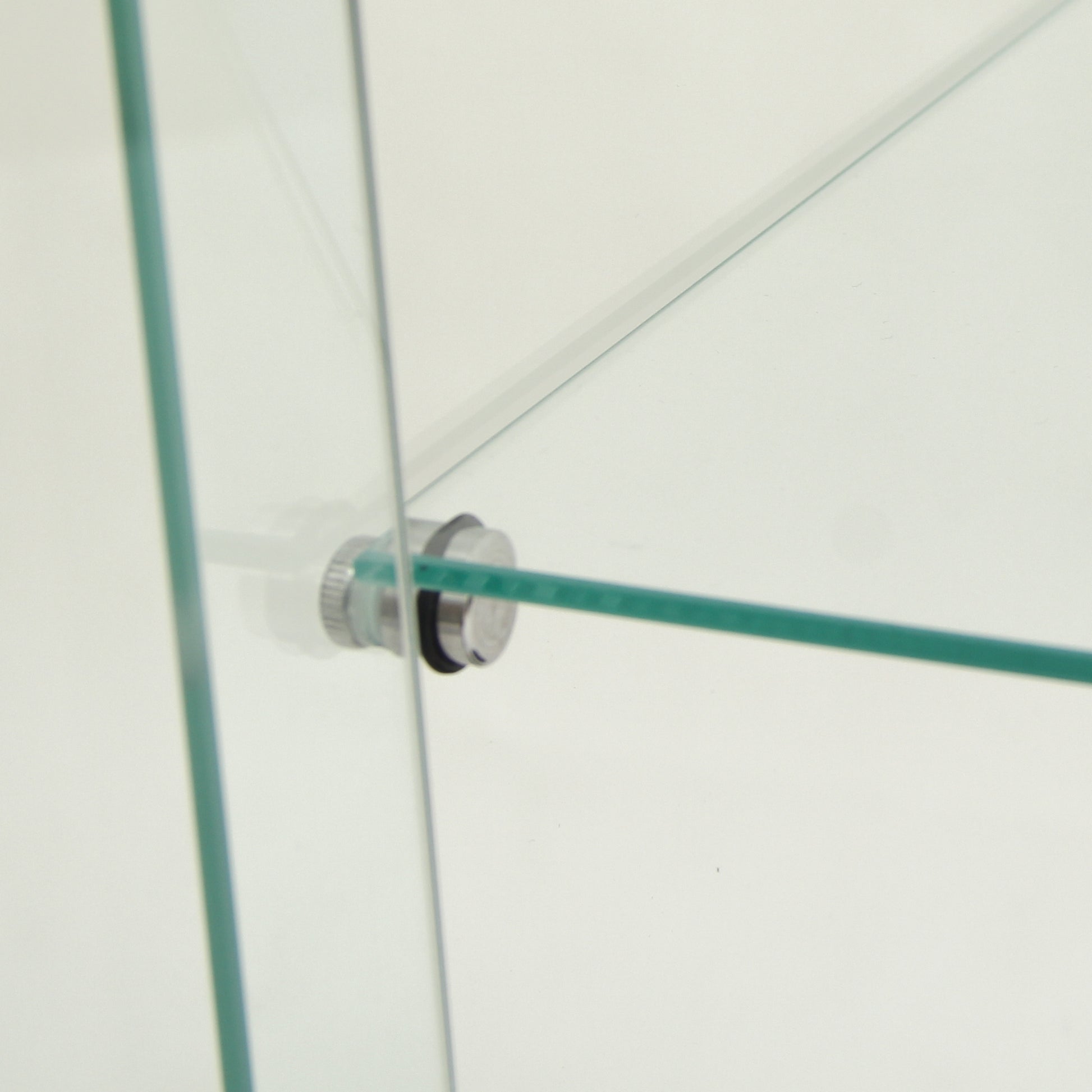 - Capacity: Each glass shelf level can withstand a maximum weight of 20pounds, The upper and lower decks can hold 84 pounds, great for displaying books, photos, medals, action figures, wine bottles, toys, artwork, decorations Safe Installation: Adjustable feet can hold weight up to 440lb. Each display cabinet comes with a fixing device. In order to prevent tipping over, we recommend secure