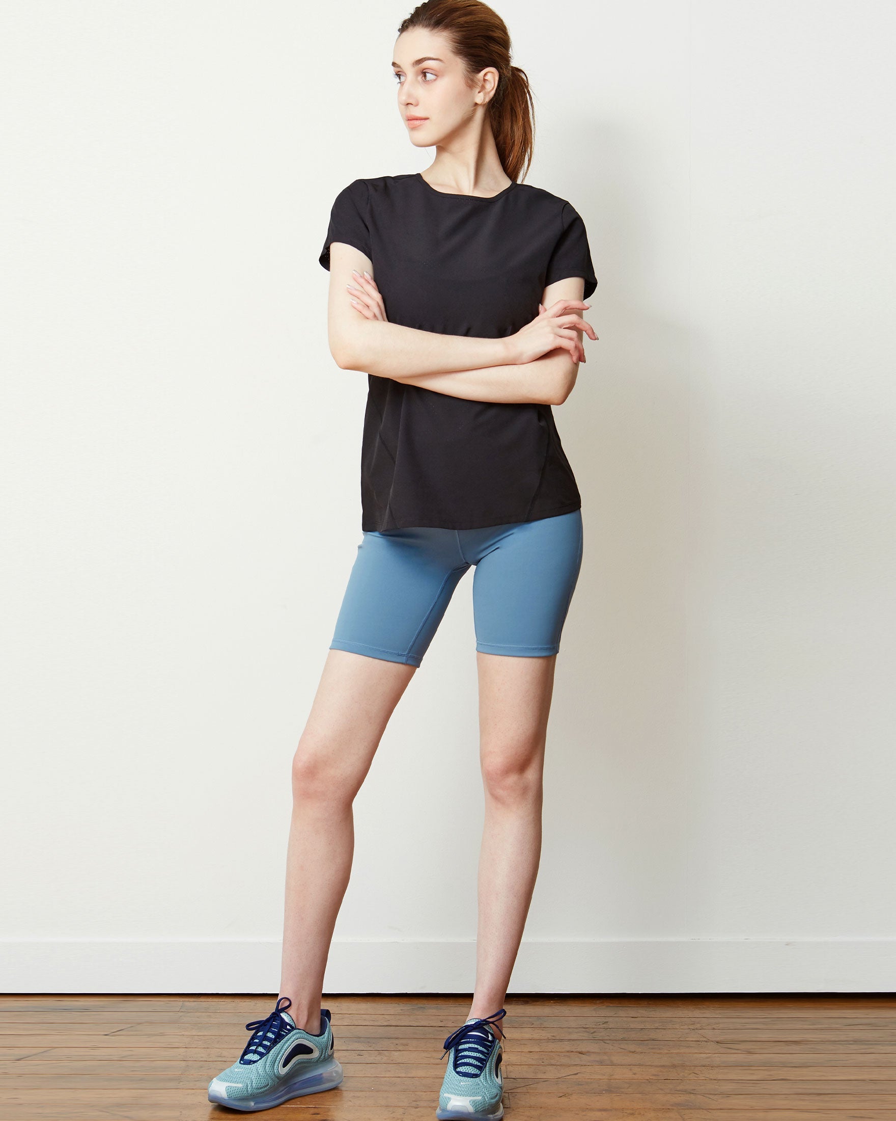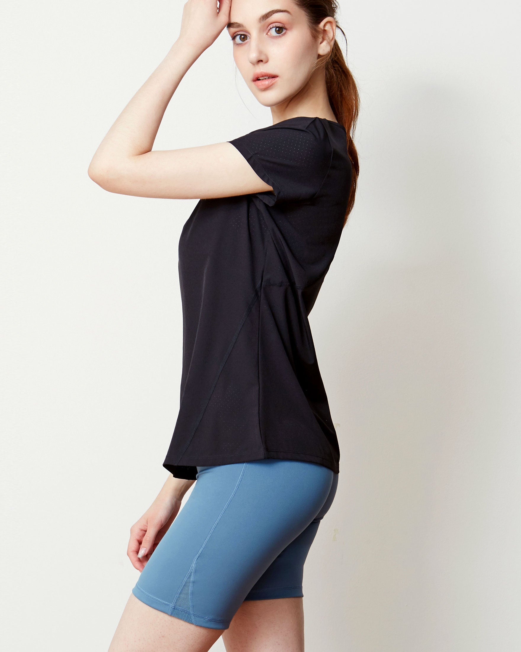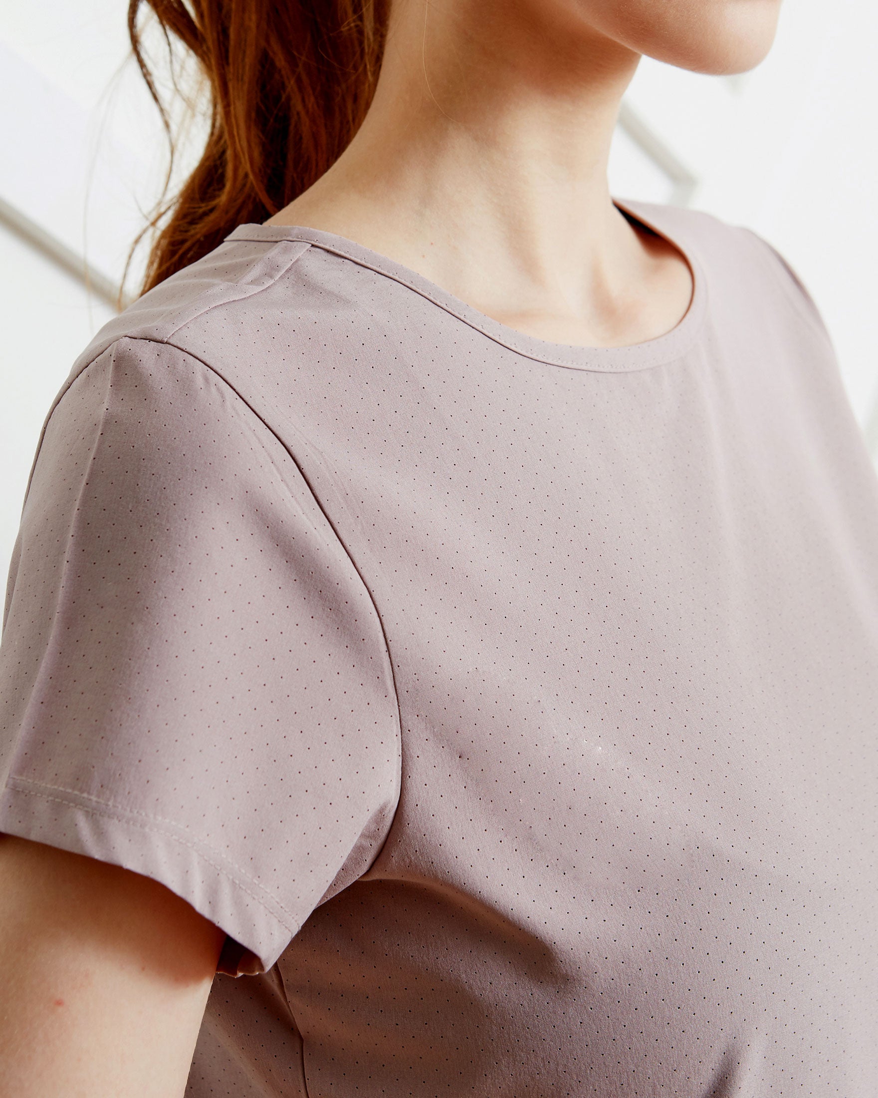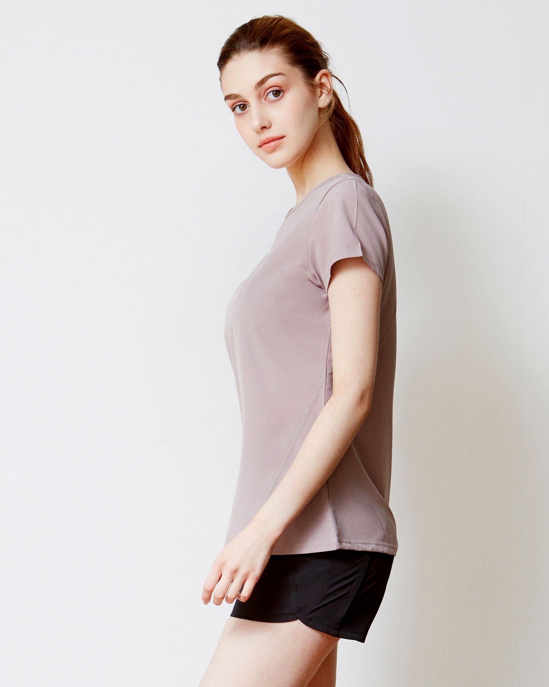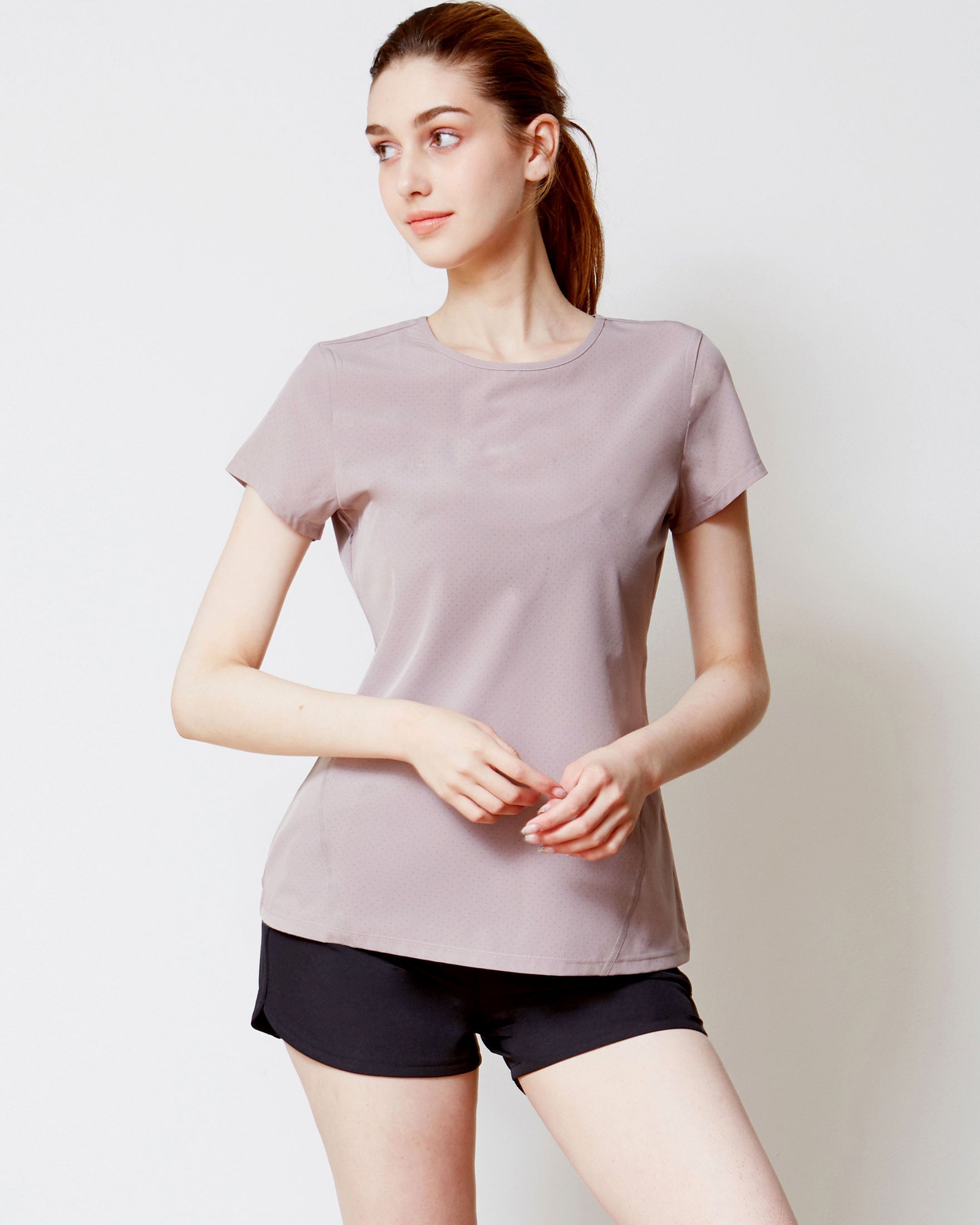 A light walk or jog goes a long way in this short sleeve top with perfect length coverage. Made in our stretch woven fabric that absorbs sweat quick and support more movement. All over laser cut mesh hole keeps you breezy throughout your workouts and hot weathers. Pair with your favorite running or biker shorts. For run and train