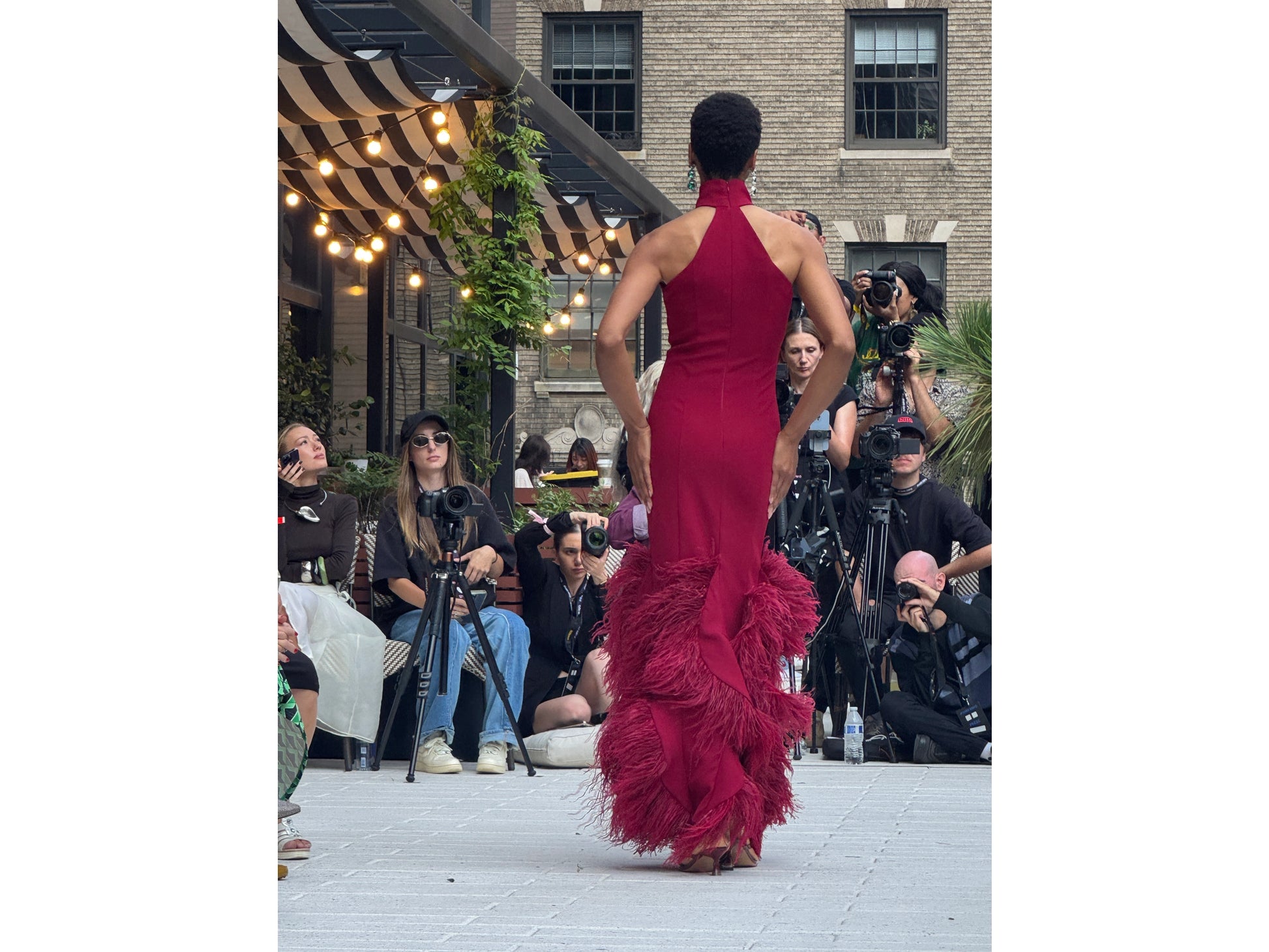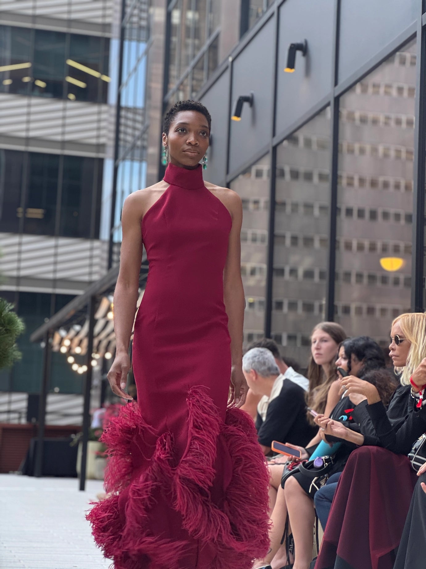 Make a statement in this sophisticated bordeaux crepe gown, featuring a striking halter neckline and an eye-catching feathered hem. Designed for those who demand elegance at formal occasions, the Alara Gown delivers red-carpet glamour with every wear. Perfect for evening galas, weddings, and unforgettable nights out.