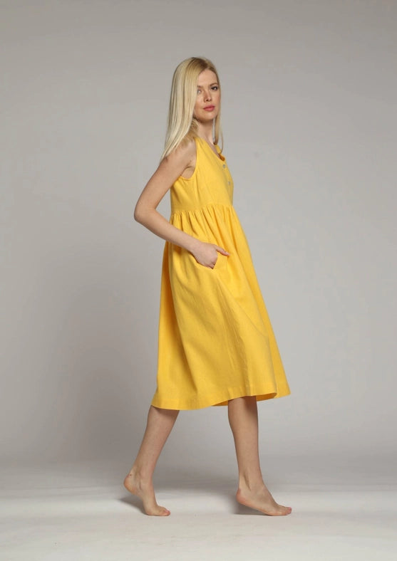 Amalfi Sleeveless Loose Linen Dress-Dress-Truly Linen-XS-Yellow-Urbanheer