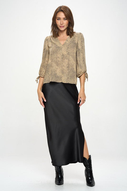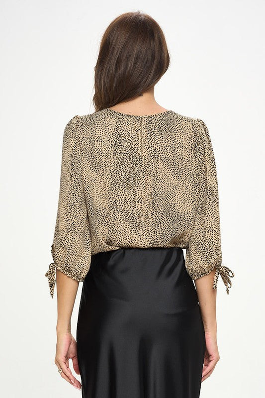 Animal Print Top with Self Tie Sleeves