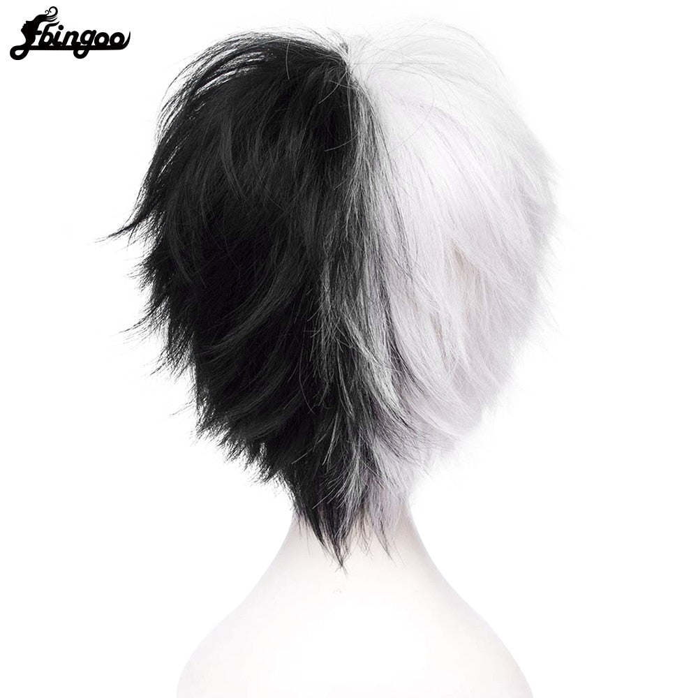 Anime Danganronpa Monokuma Wig White Black Synthetic Hair Costume Dangan Ronpa Women Men For Halloween Party