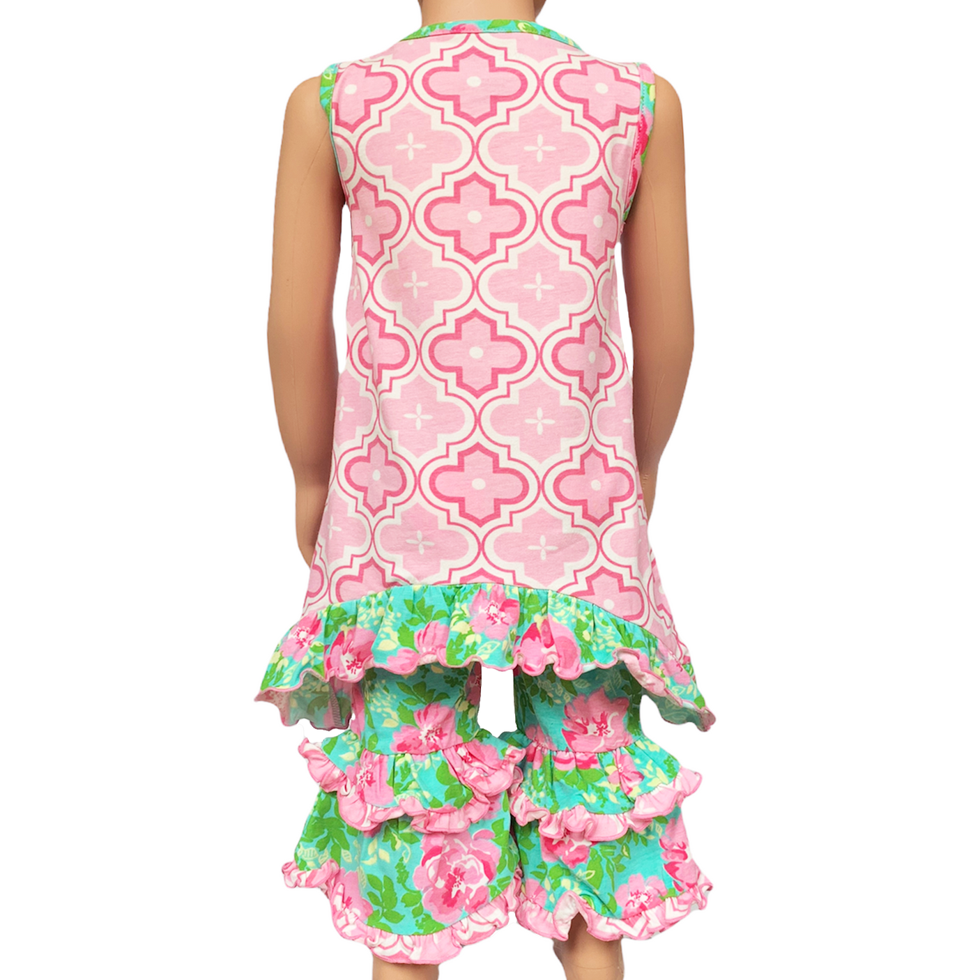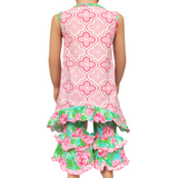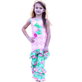 AnnLoren 2-piece set includes: a High Low Unique Pink Polka Dot Tunic. Easter Bunny Applique with Big Pink Tulle Fluffy Tail. Spring Floral Ruffle Capri Pants. 95% Egyptian cotton and 5% Spandex stretch knit. This 2 piece set is perfect for wowing the crowd! Designed from a delightful mix of prints that please & colors that pop. Great for Easter Holiday and events.