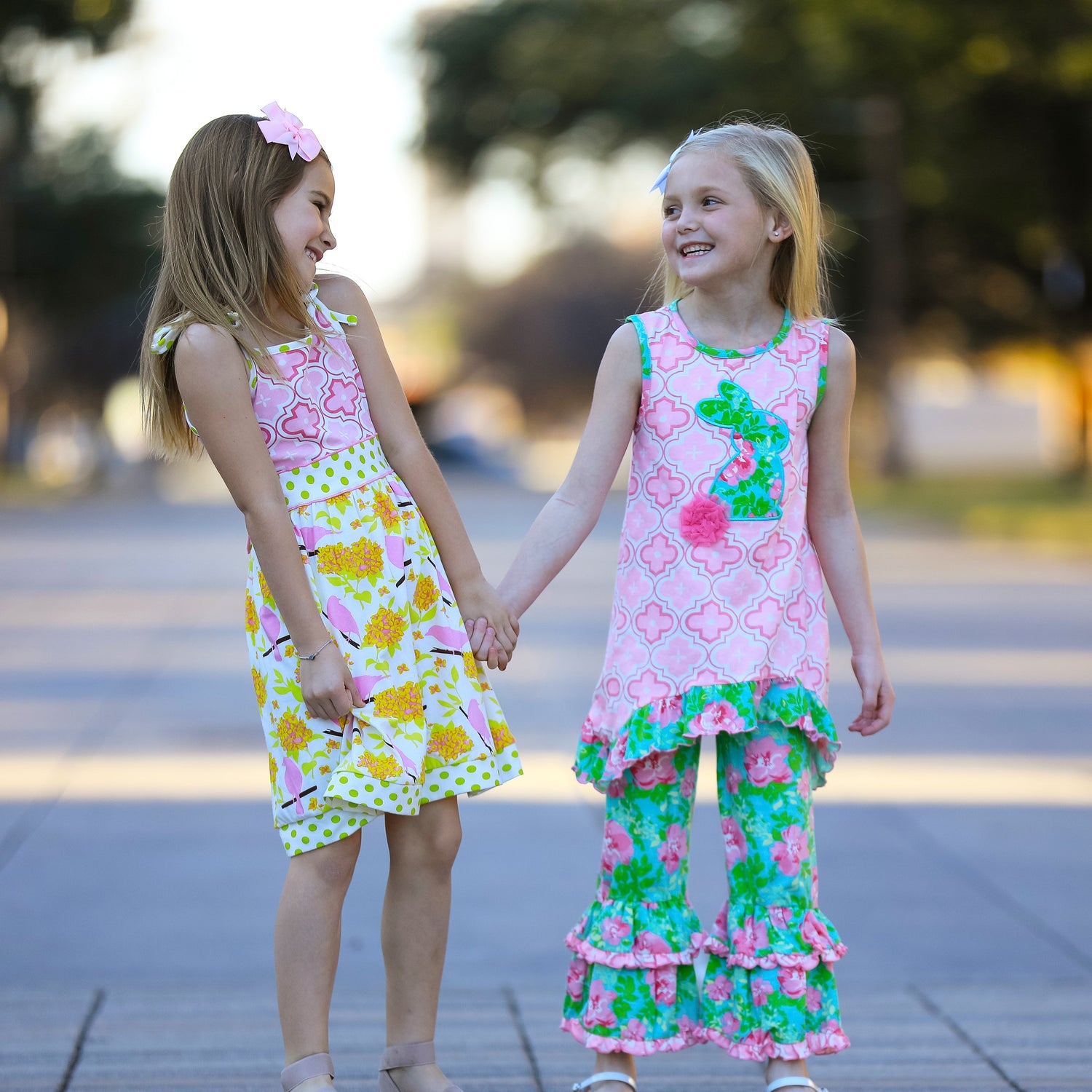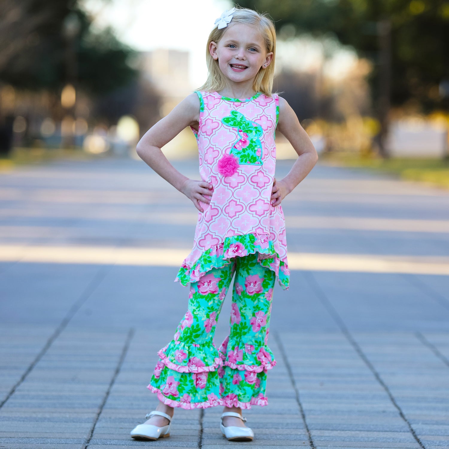 Annloren Big Little Girls Easter Bunny Tunic Spring Floral Ruffle Capri Pants Outfit