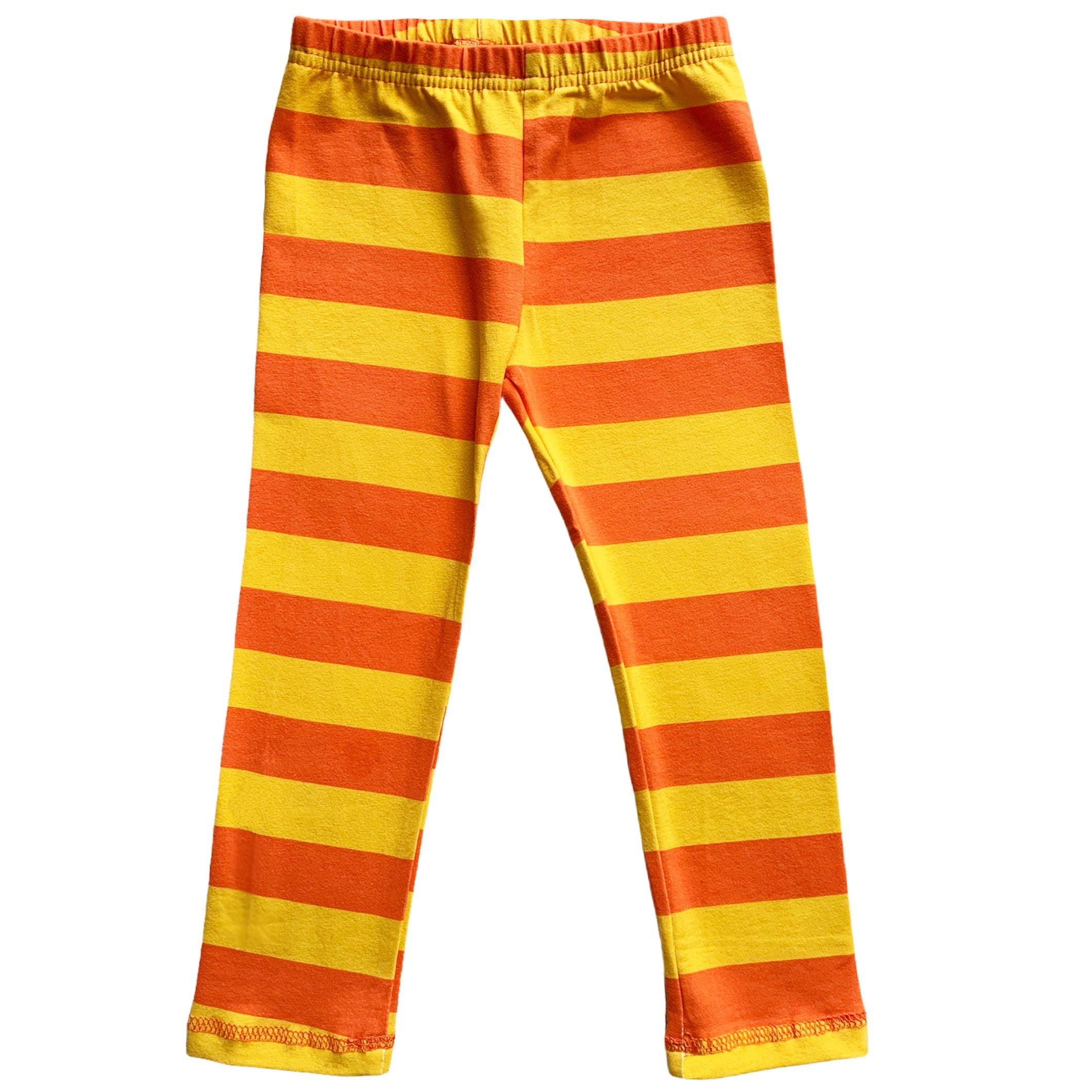 AnnLoren Long sleeve black and white polka dot Dress with Pumpkin patch embroidered. Orange striped sash with leopard bow. Orange stripped leggings with elastic Waistband for comfortable fit. 97% Cotton/3% Spandex. Machine Wash and Hang Dry for best care.