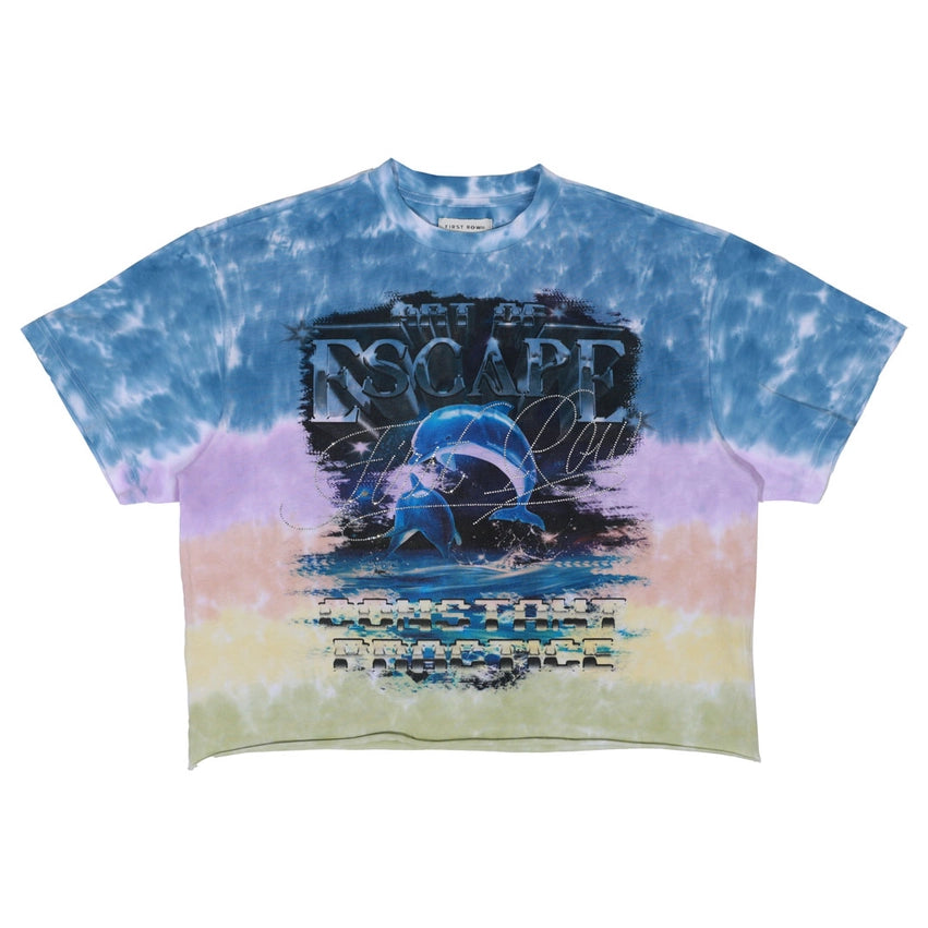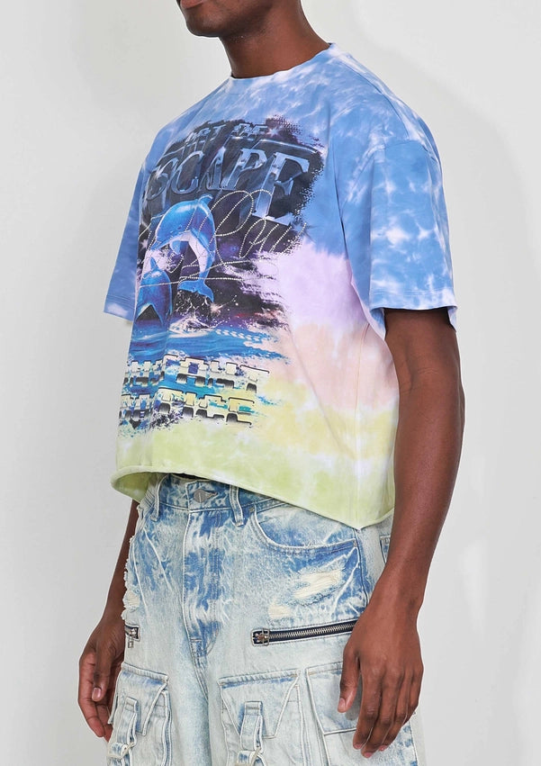 This Art of Escape Dolphins Cropped Tee features a heavy washed design, stone detail, and raw edge hem for a unique look. With a comfortable fit and trendy cropped style, this tee is perfect for any casual occasion. Its 100% cotton material ensures both style and comfort.