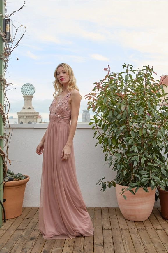 Introducing the Aruna Maxi Dress, a versatile long dress available in two stunning colors - Rose and Apple. Made with high quality tulle and hand embroidered with sparkling rhinestones, this dress is perfect for any occasion. Elevate your style and feel confident in the Aruna Maxi Dress.