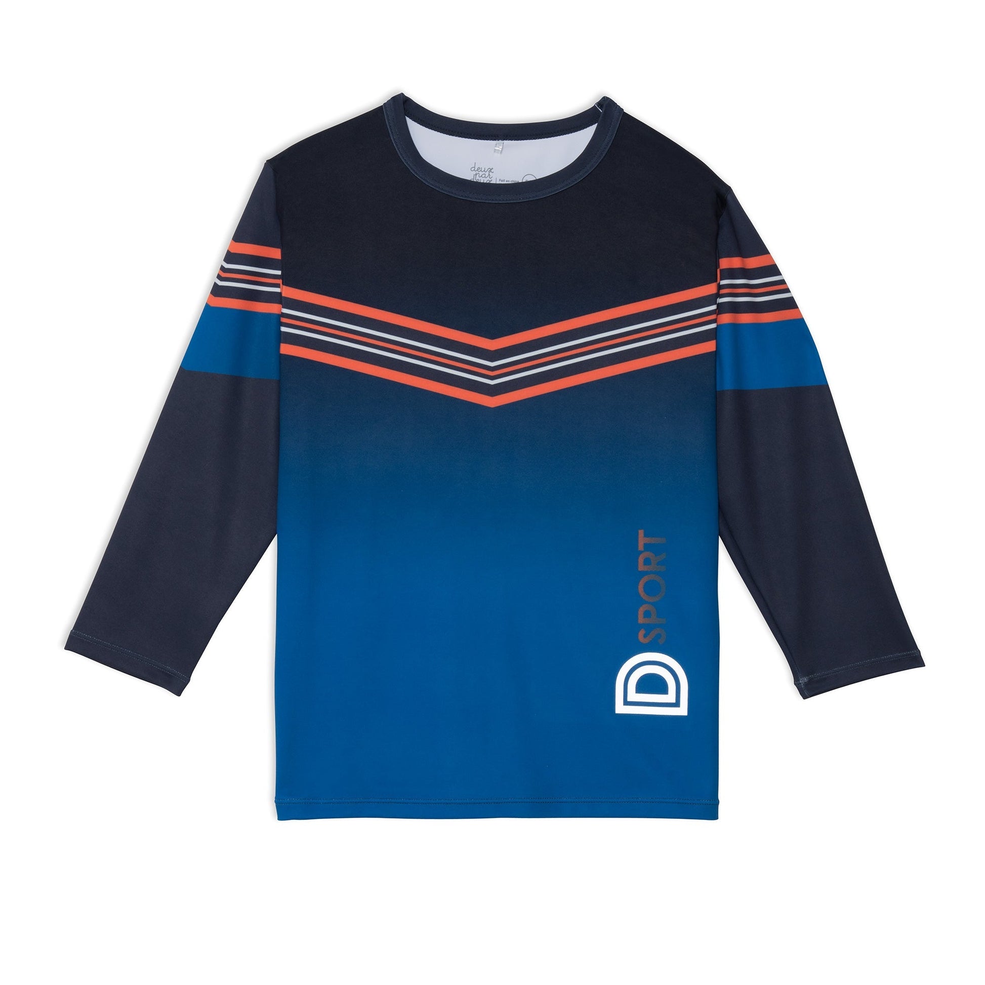 With long sleeves and a chevron stripe print, our Athletic Long Sleeve Top offers both style and performance function. This poly/elastane top features a soft and stretchy fit with contrast long sleeves, a crew neckline, and a logo print on the front.